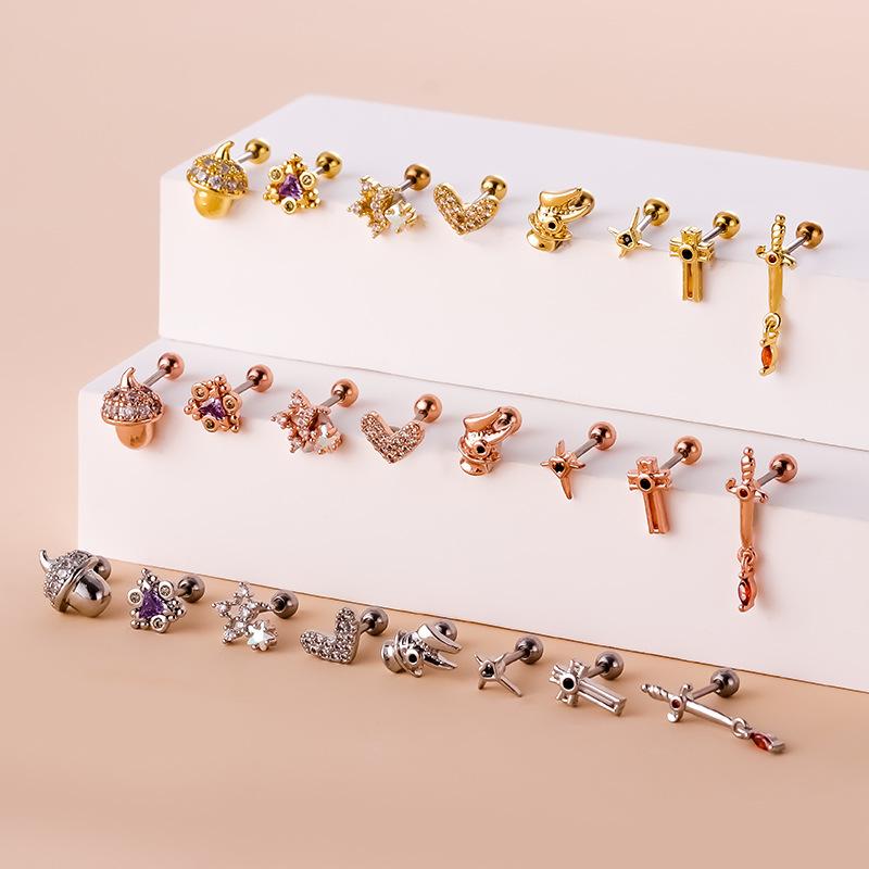nombre del producto | Nuevo acero inoxidable varilla delgada doble cabeza tornillo removible uña para hueso de la oreja aretes piercing de comercio exterior europeos y americanos aretes de moda |
