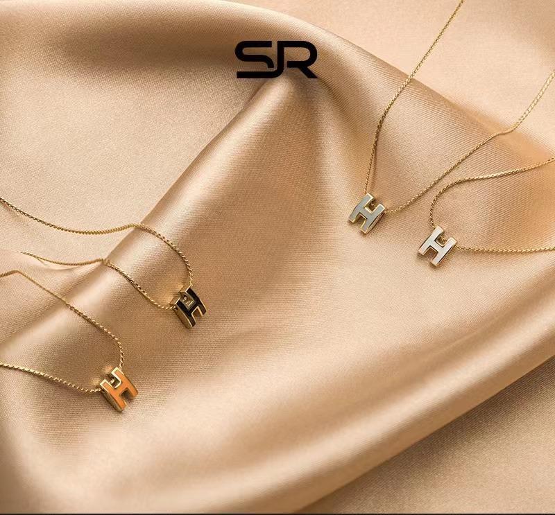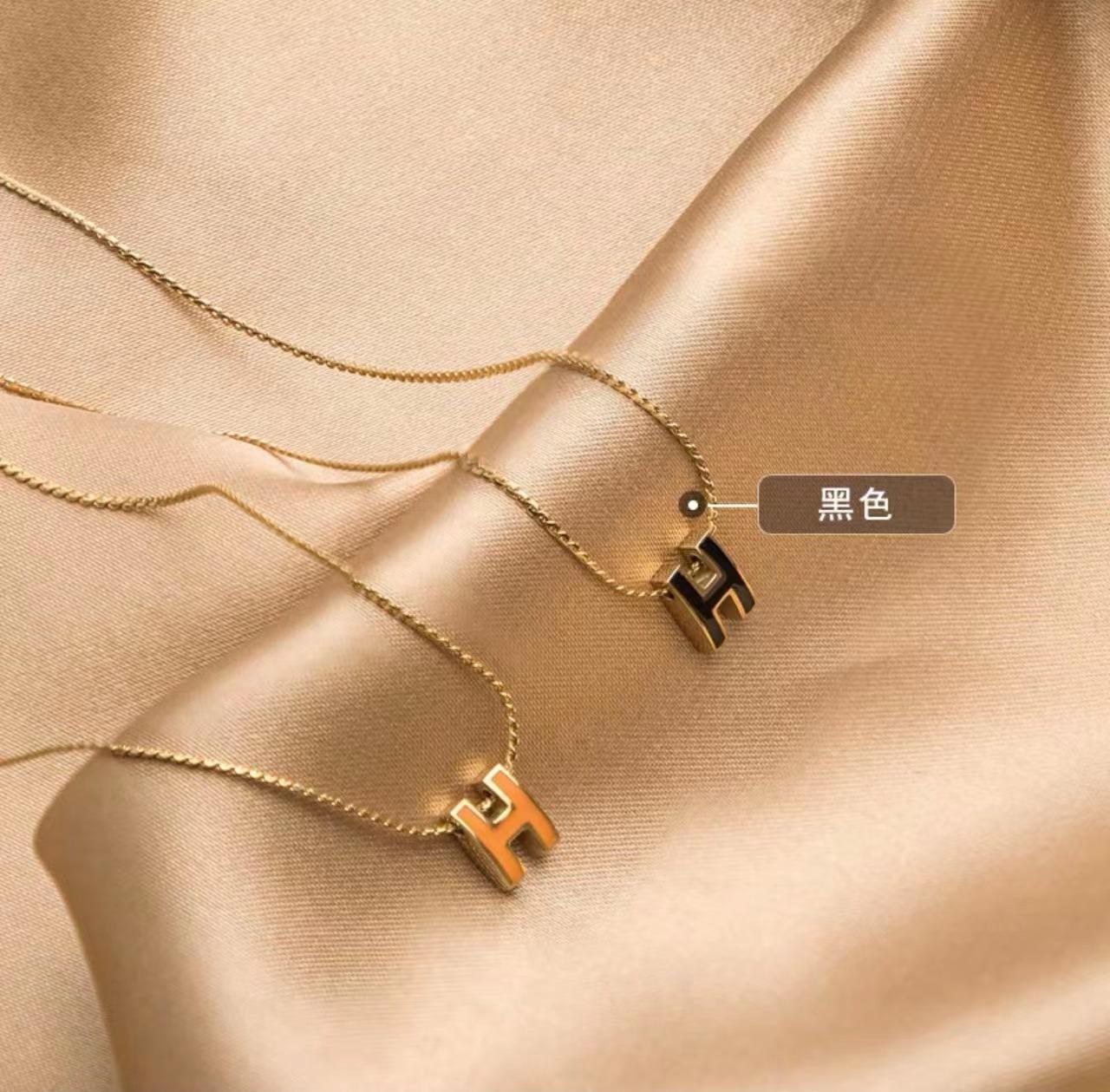 Mini collar con colgante de letra h, acero de titanio, resistente al color, chapado en oro de alta calidad, ligero, de lujo, con cadena de clavícula sencilla.