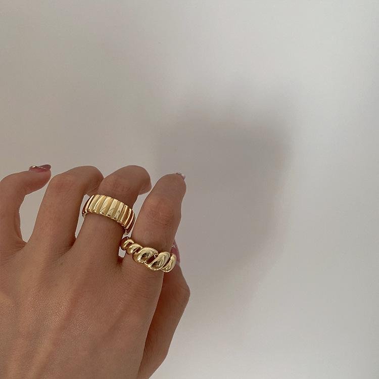 Anillo abierto de metal con giro vintage de estilo francés para mujer, estilo coreano, único, sencillo y elegante.