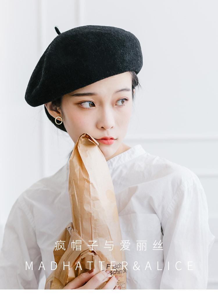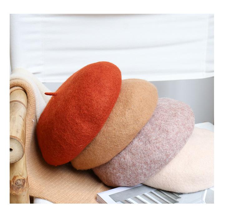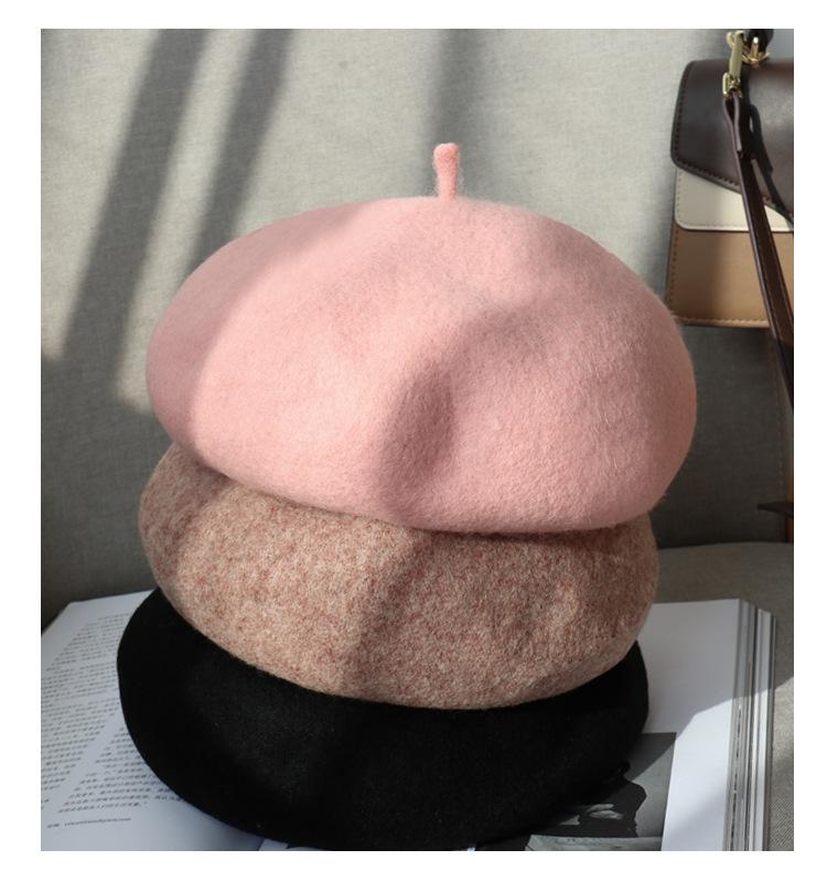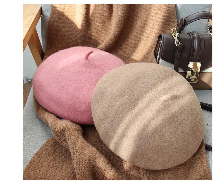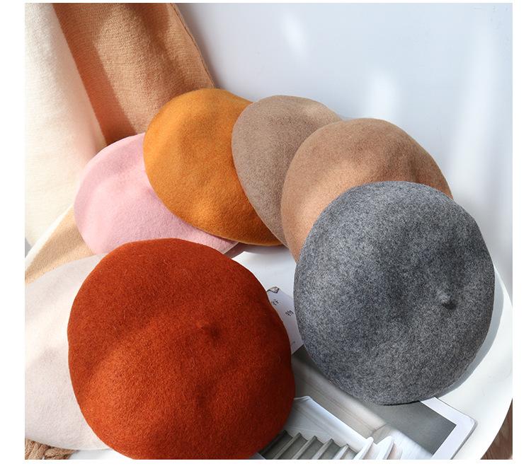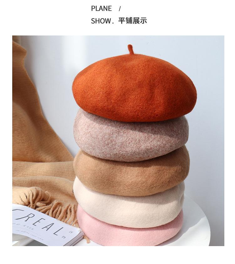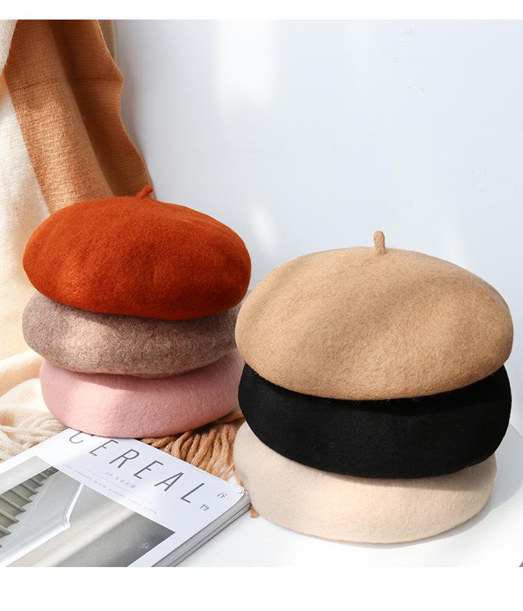 Boina de Otoño e Invierno de Estilo Japonés para Mujer, Versátil Sombrero de Pintor de Estilo Británico, Boina Linda de Lana de Color Sólido, Cálida
