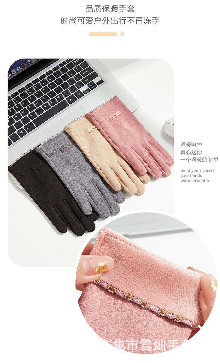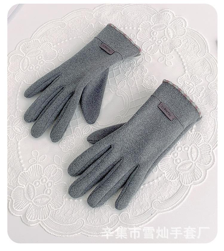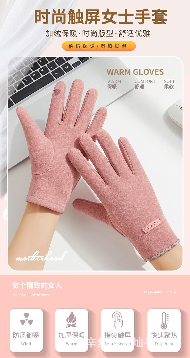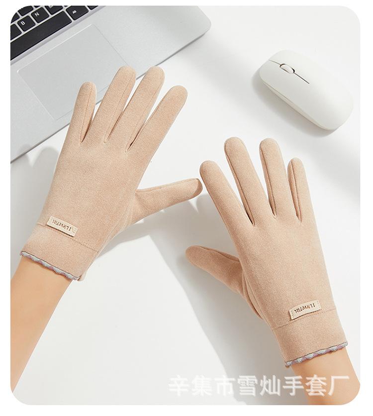 Guantes de ciclismo para mujer, de invierno, de terciopelo y acolchado de terciopelo, cálidos, estilo coreano, para otoño, al aire libre, con pantalla táctil, bonitos