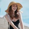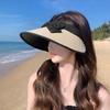 Sombrero de copa de paja negra de goma de ala ancha para verano, protección UV, viaje, vacaciones, sombrero para el sol, sombrero para el sol de playa