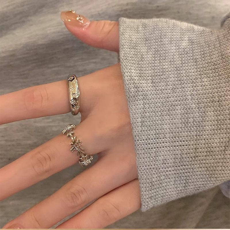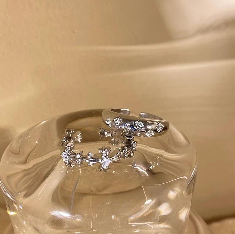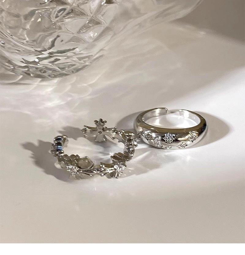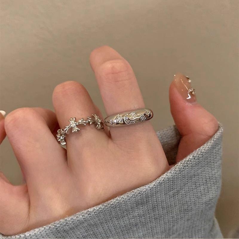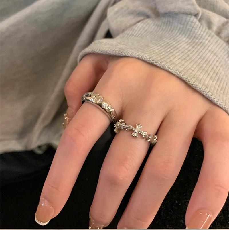 Anillo de cruz de circonita plateada de lujo, simple y ligero, diseño de nicho para mujer, anillo para el dedo índice con personalidad, anillo de pareja a la moda