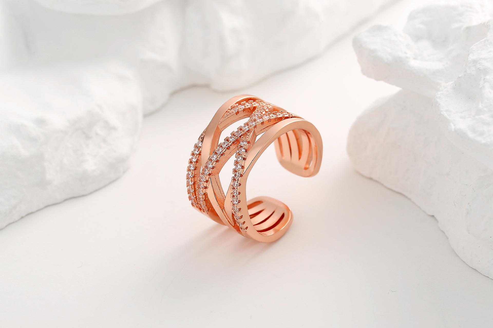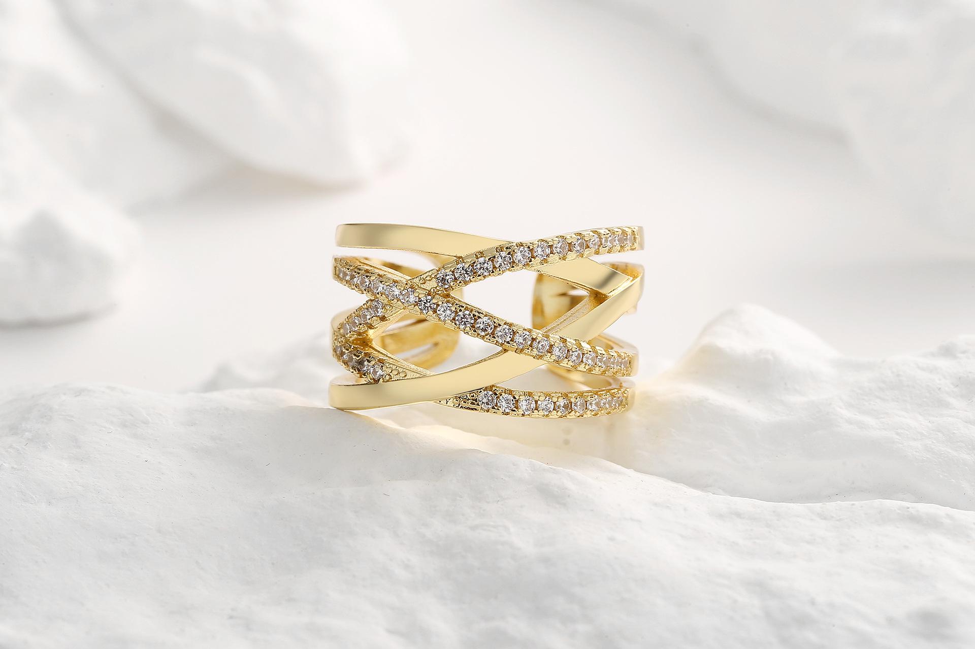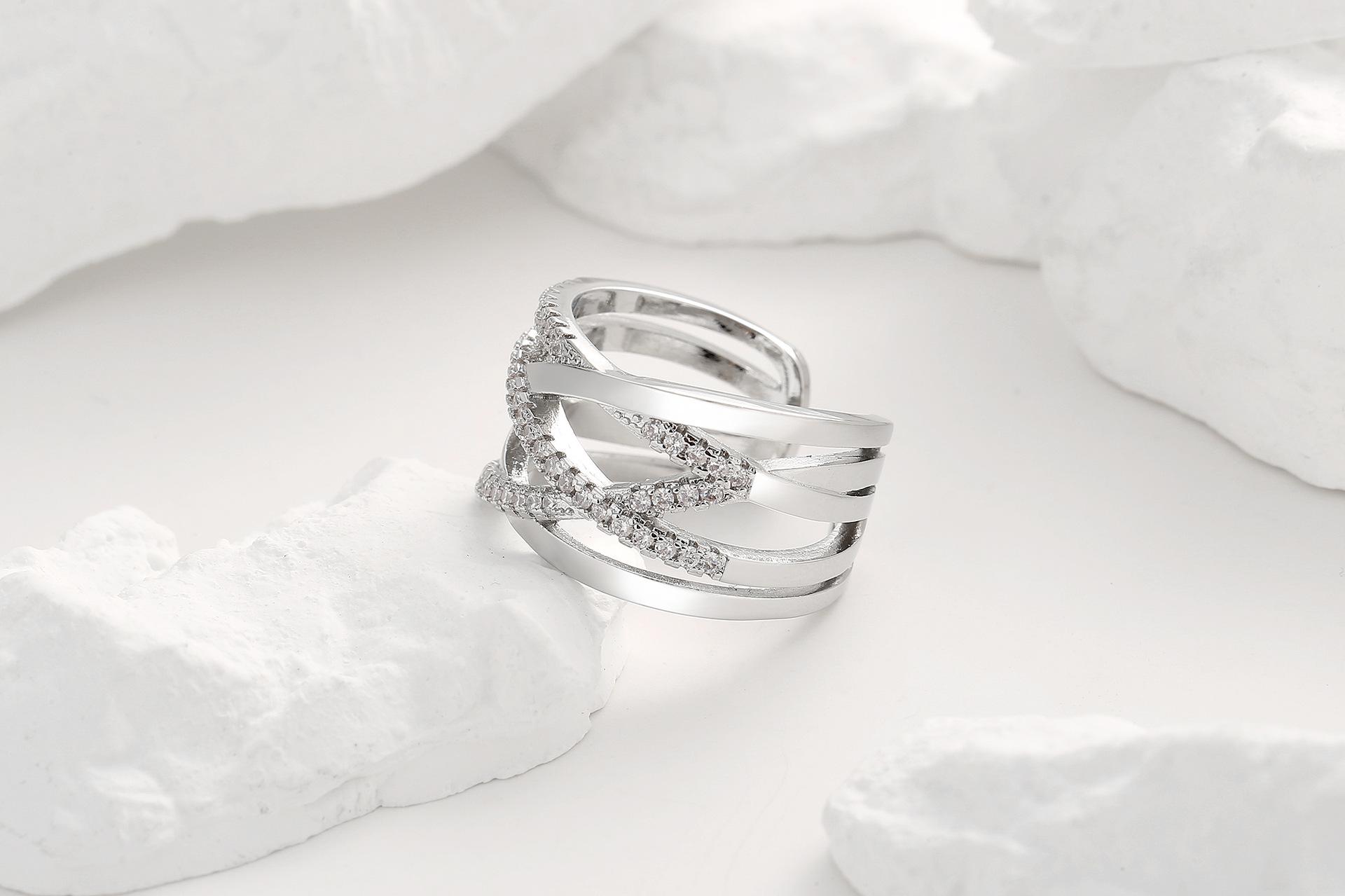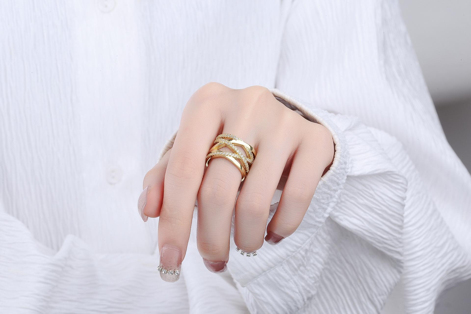 Moda Transfronteriza Europea y Americana Anillo Abierto de Cruz de Diamantes de Alta Gama Personalidad Temperamento Estilo Simple y Cool Anillo para el Dedo Índice Venta al por Mayor