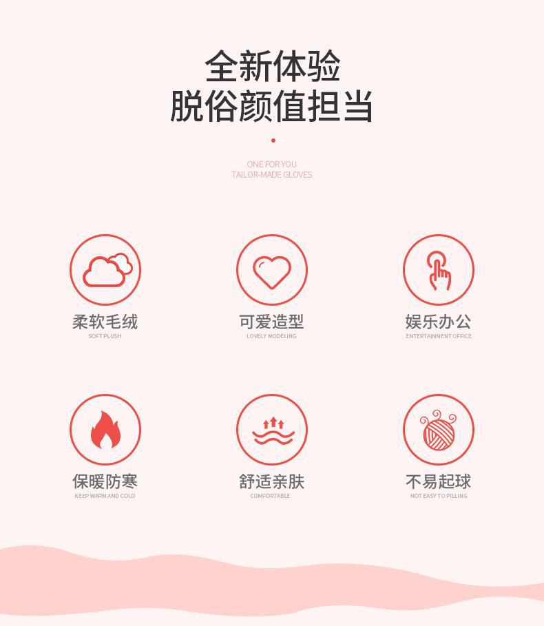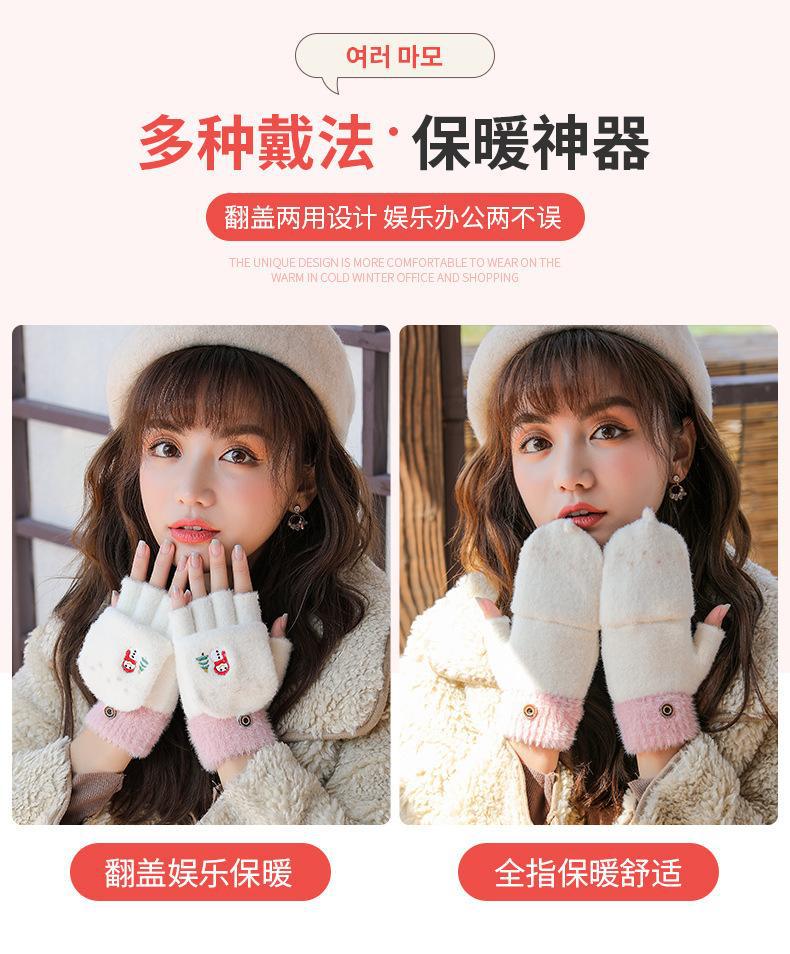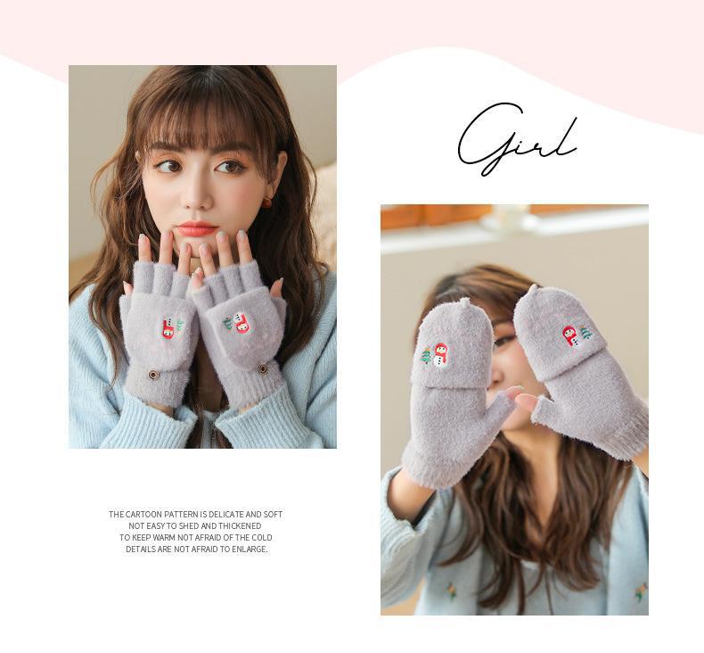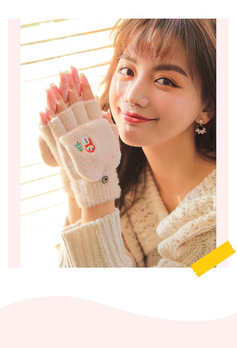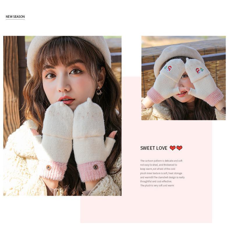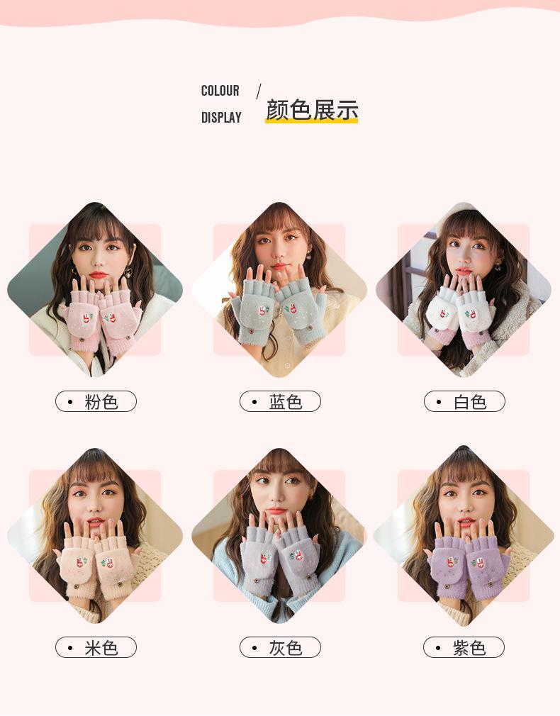 Half finger gloves, Japan and South Korea, Lady, Cartoon, Natural, Cute, Sweet, Princess, College Style, Pasto...