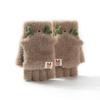 Guantes de medio dedo con vuelta cálida de felpa para mujer, de invierno, tejidos, protección para la muñeca, dedos con fugas, versátiles, para pantallas táctiles, oficina, escritura, estudiantes