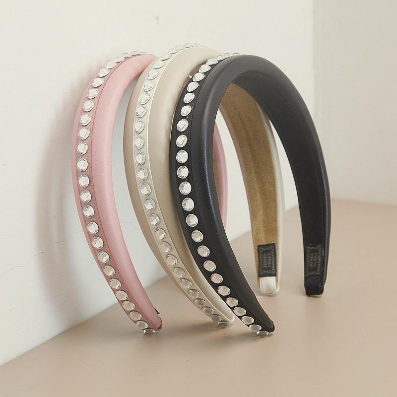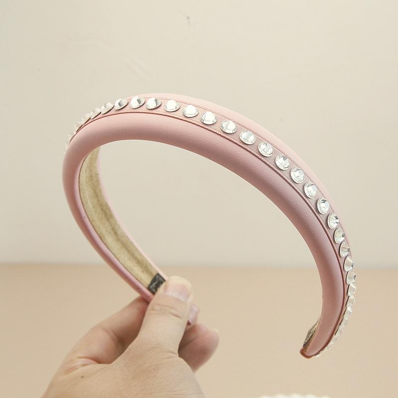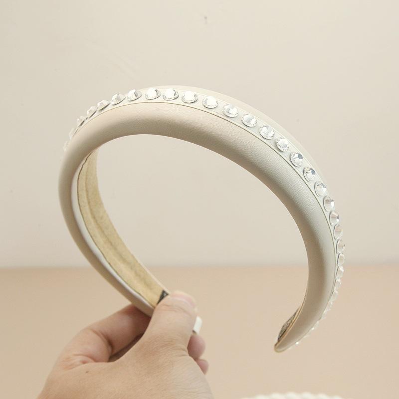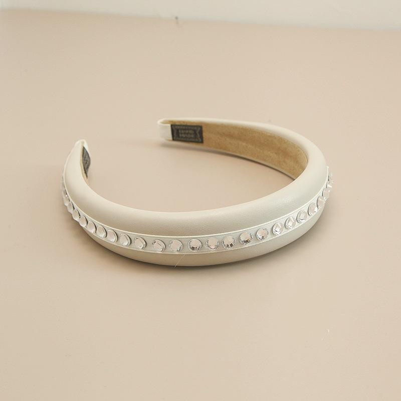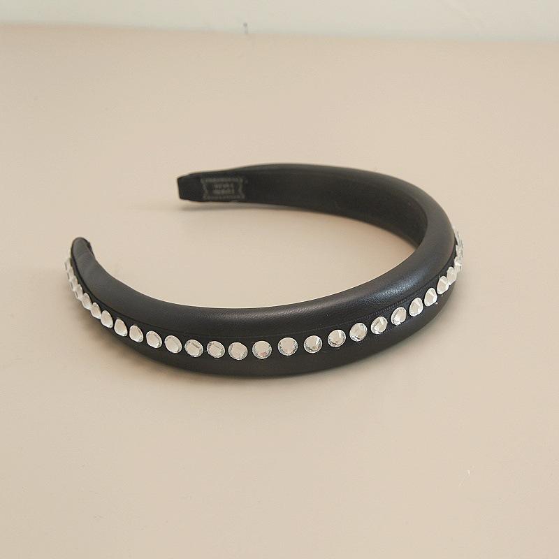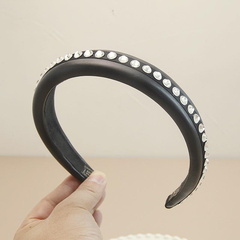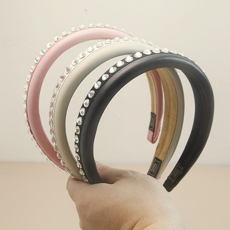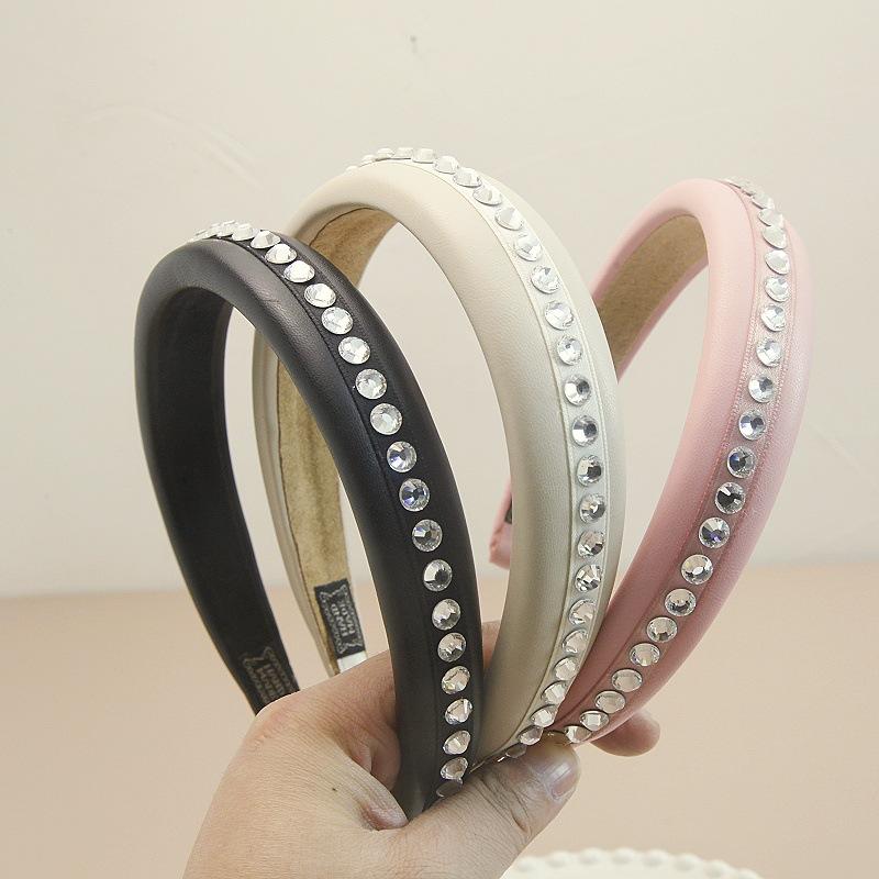Diadema geométrica de cuero con diamantes, diadema francesa retro con calavera alta, diadema prensada para el cabello, temperamento simple de moda, nuevos accesorios para el cabello para mujeres