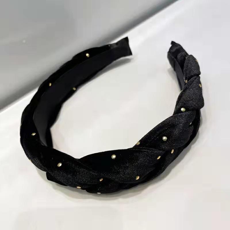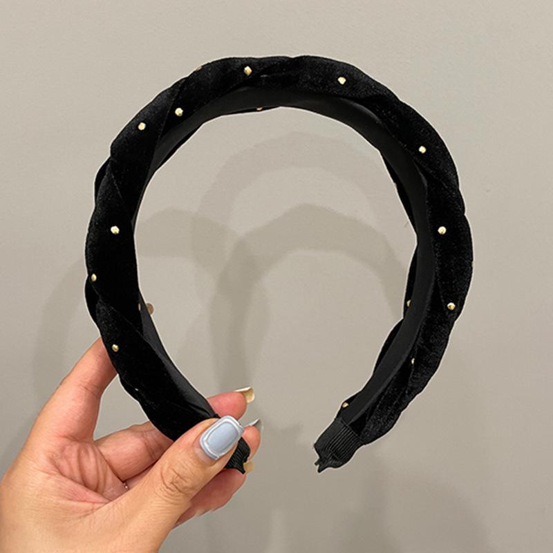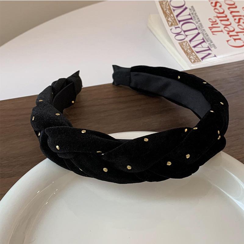 Diadema Twist de Terciopelo con Lunares de Onda Retro Estilo Coreano Elegante Combinable Parte Superior Craneal Alta Presión Banda para el Cabello Celebridad de Internet Nuevo Estilo