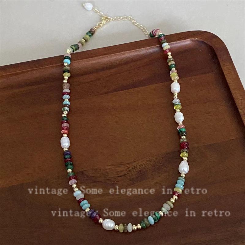 Collar de cuentas de bambú de gravaPeso: 14,4 g