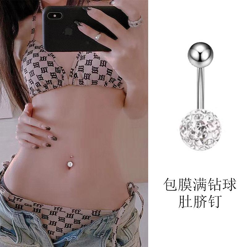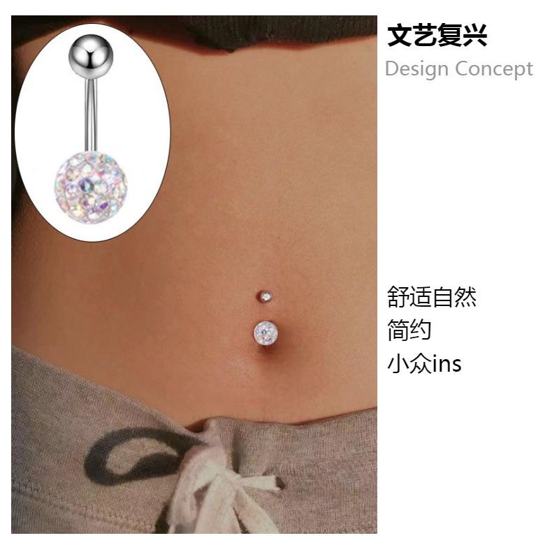 Amazon Anillo para Ombligo de Acero Inoxidable de Venta Caliente Cabeza Única Pegamento Bola de Diamantes Completa Uña para Ombligo Diamante de Barro Cerámico Suave Joyería para Perforación