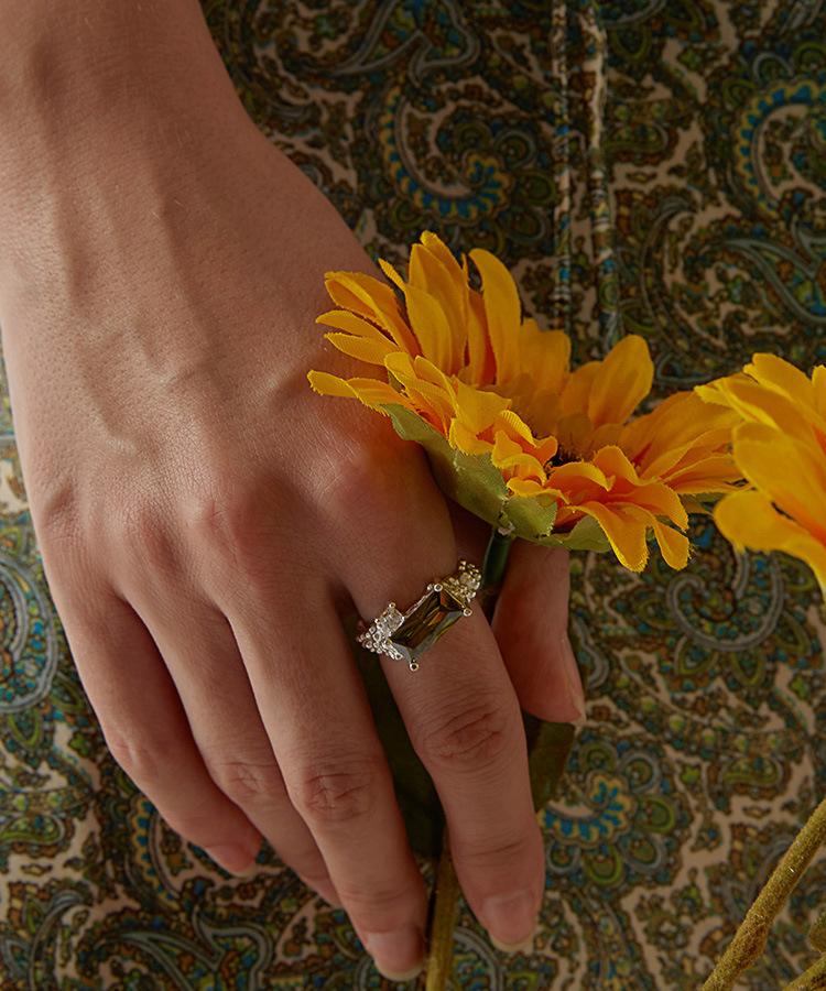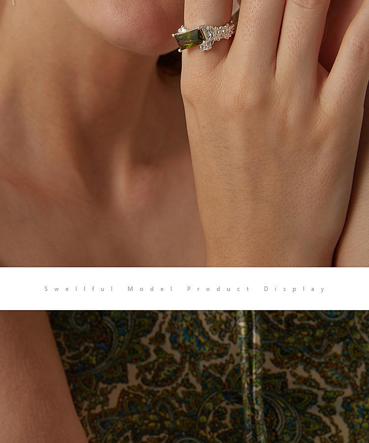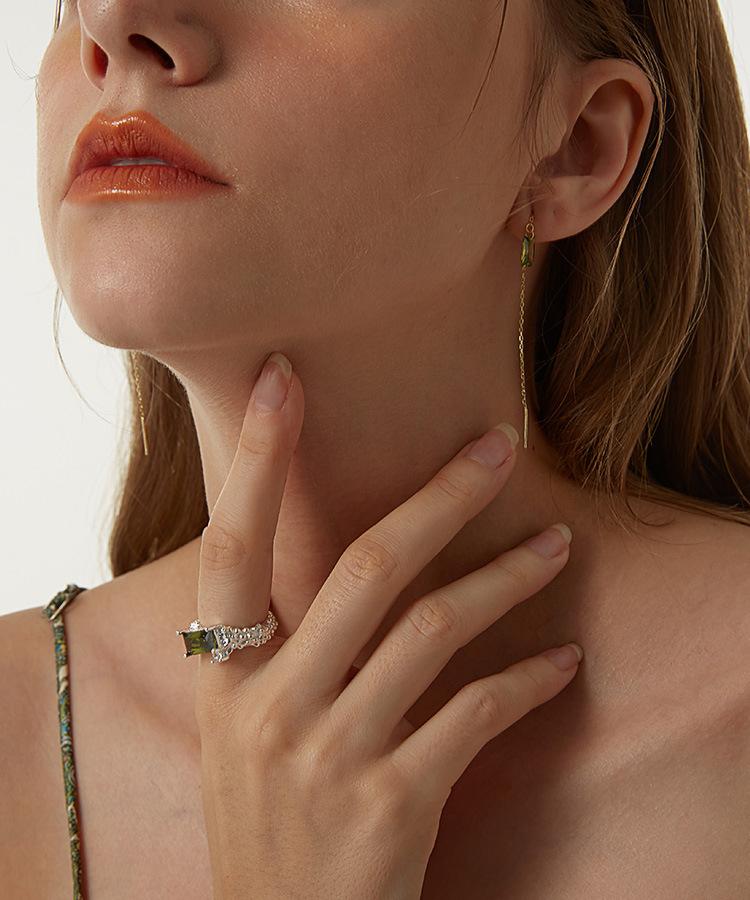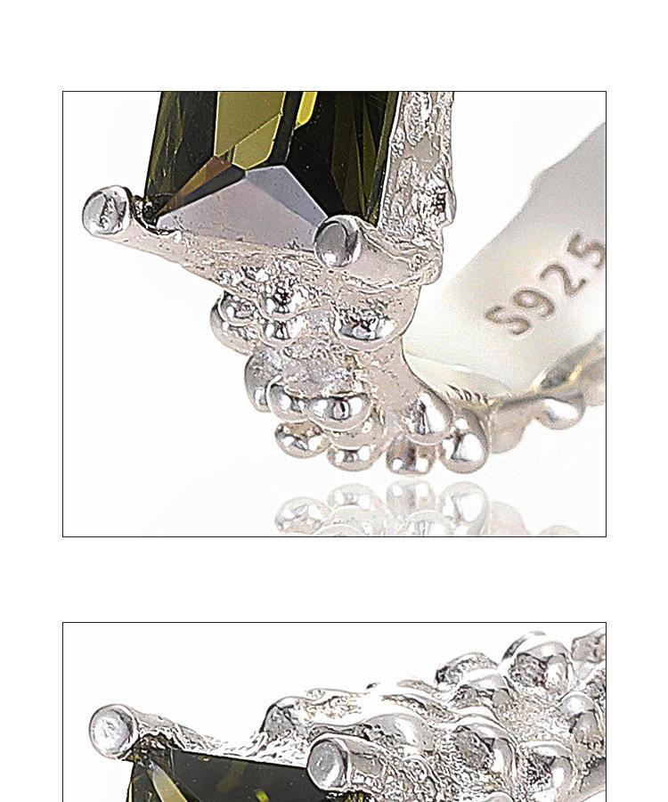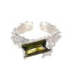 Anillo Elf Zircón Verde Lava Simple para Mujer Estilo Coreano Moda Geometría Plata S925 Anillo Abierto Anillo para el Dedo de Comida Moderno