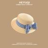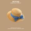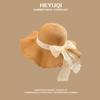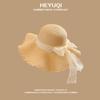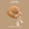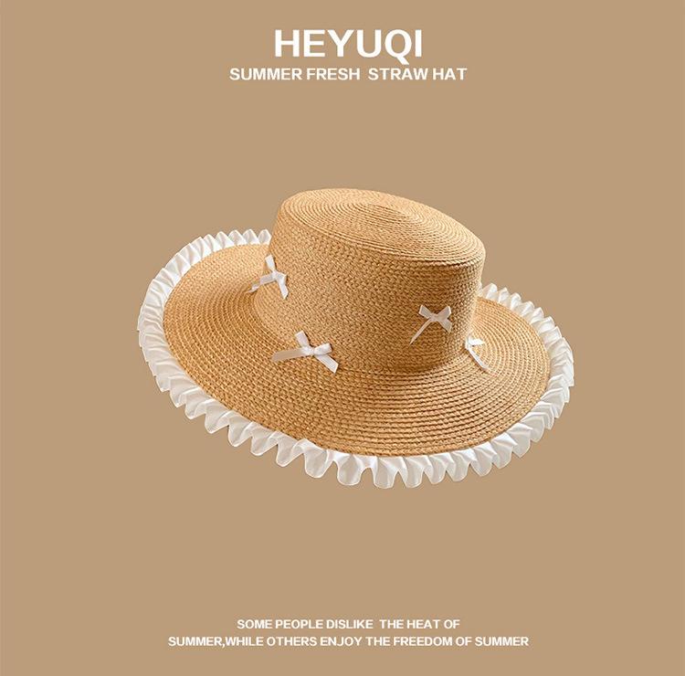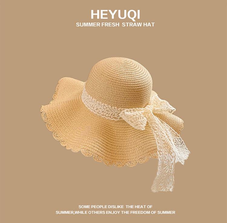 Sombrero de paja Rafi con lazo de encaje estilo francés para mujer, sombrilla de verano, protector solar, sombrero de playa de ala grande