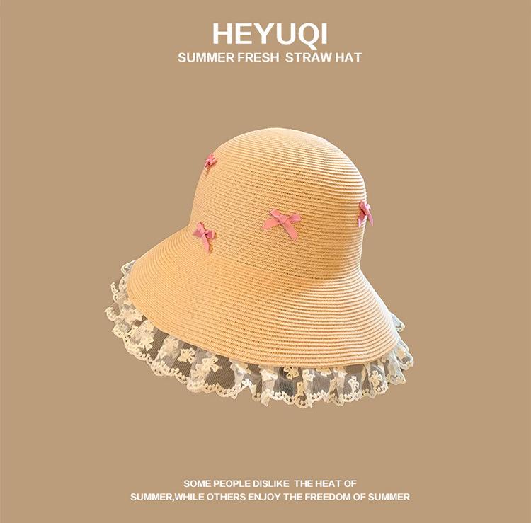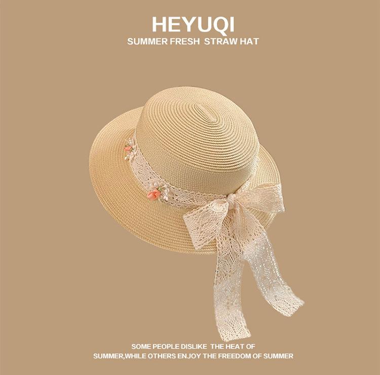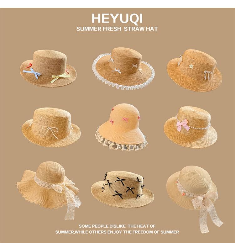 Beige Lace Ribbon Straw Hat, Khaki Lace Ribbon Straw Hat, Pink Butterfly Empty Hat, Green Straw Hat, Khaki Bow...