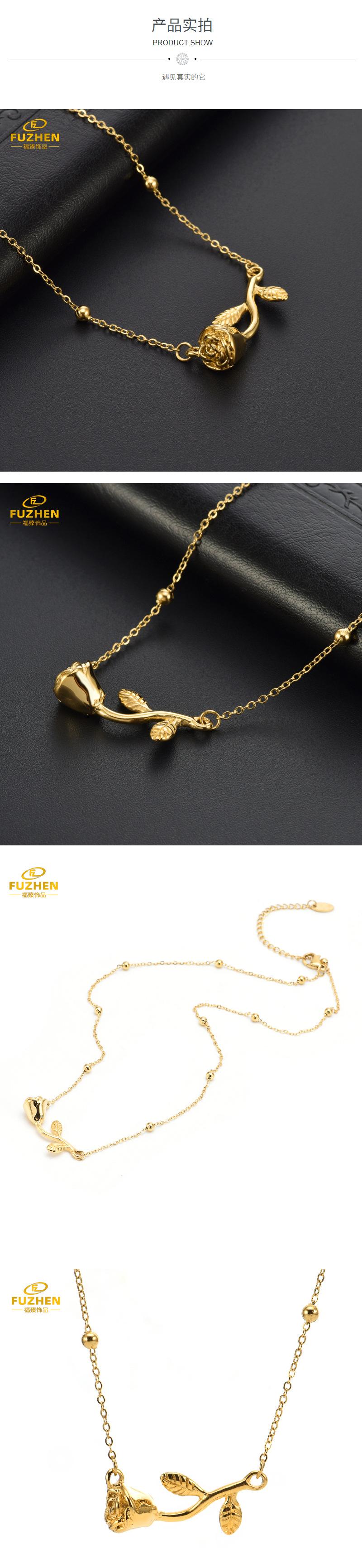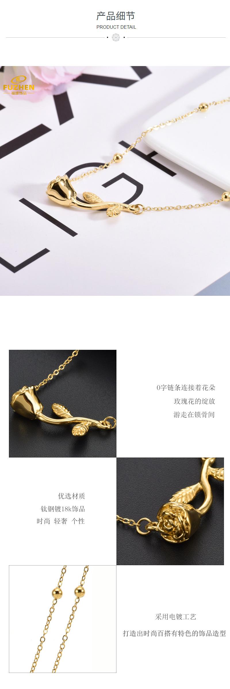Collar de acero inoxidable con forma de rosa, estilo europeo y americano, moderno, ligero, de lujo, chapado en acero de titanio de 18 quilates, colgante de flor, cadena de clavícula para mujer4.3precio de descuento:4.3