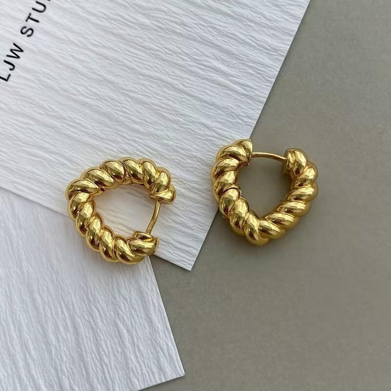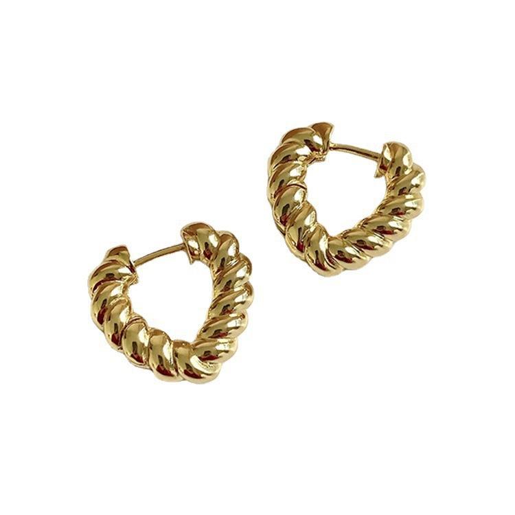 Pendientes retro dorados con forma de corazón, con hebilla, ligeros, de lujo, de alta calidad, con un toque de nicho, que combinan con todo, sencillos y modernos para mujer.