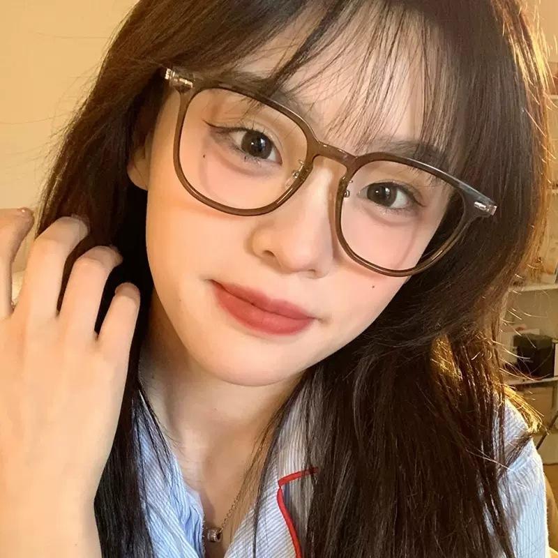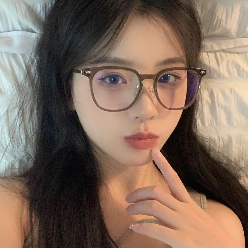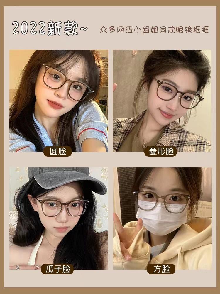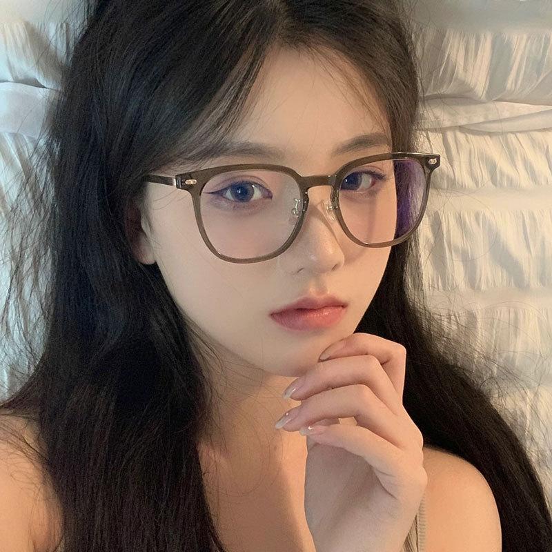Lentes para Té Frío Miopía para Mujer Marco Grande Cara Redonda Cibernético Rojo Liso Libre de Artefactos Luz Anti-azul Disponibles con Potencia Armazón para Ojos