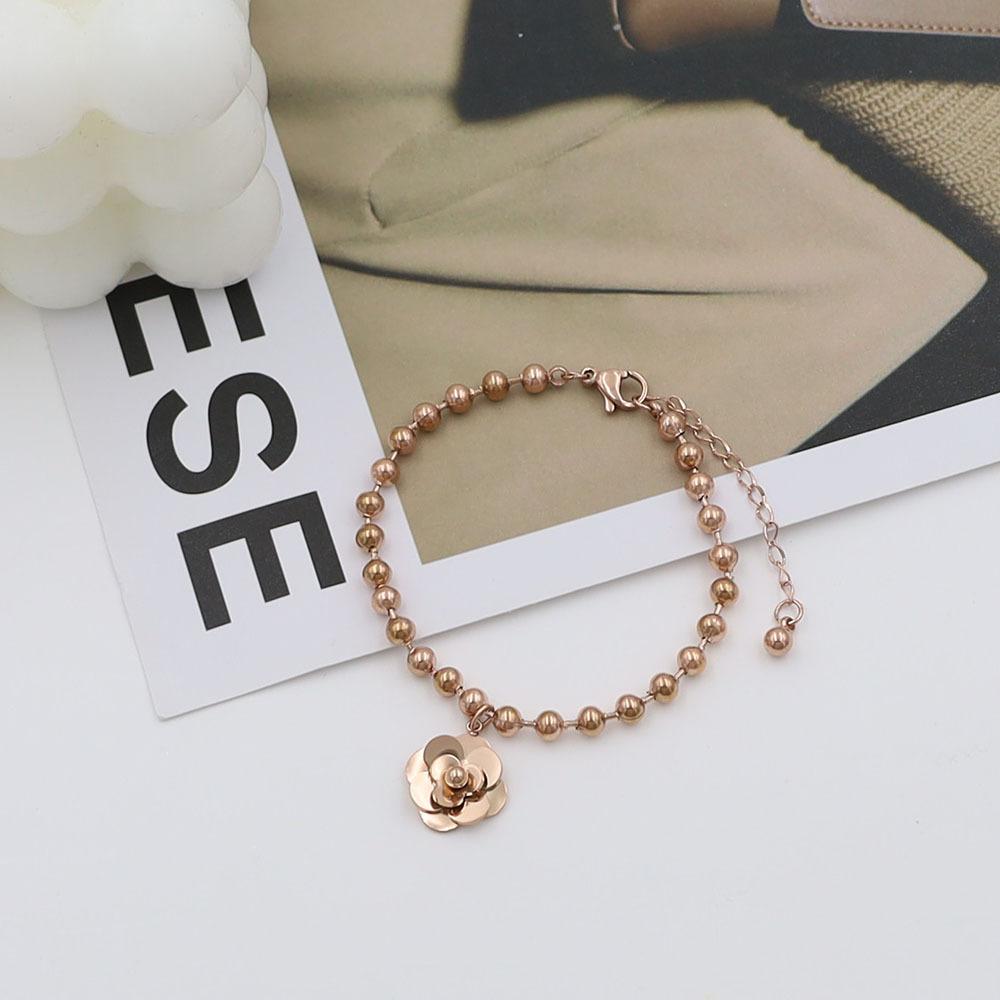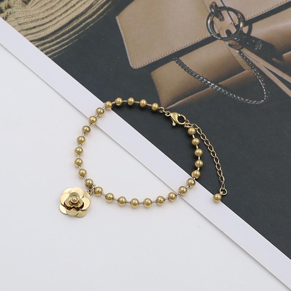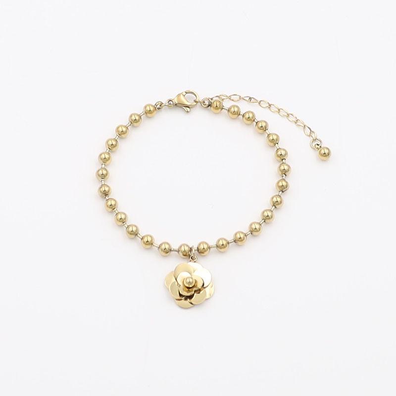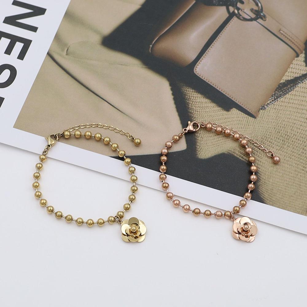 Pulsera de Acero de Titanio con Oro de 18k Simple de Moda para Celebrantes de Internet Pulsera de Flores de Acero de Titanio de Alta Calidad Joyería para Mujeres