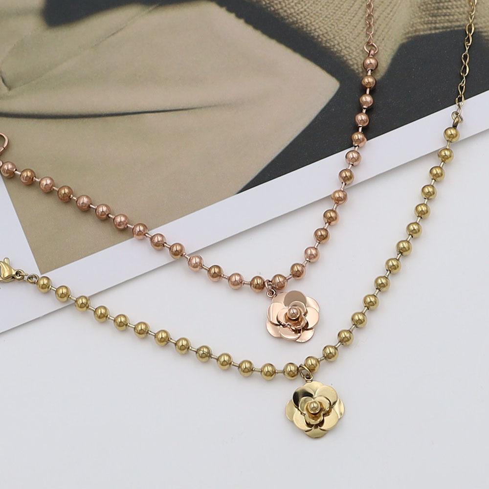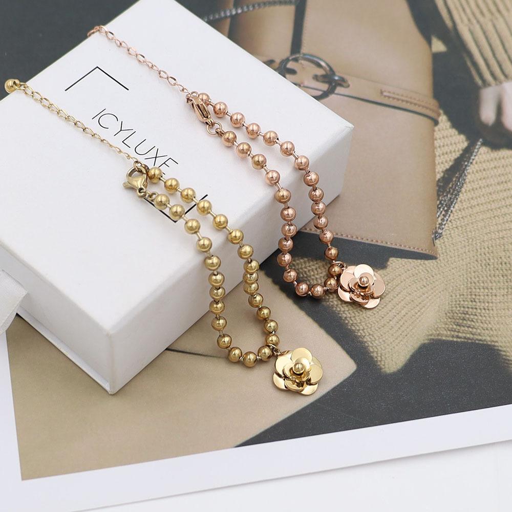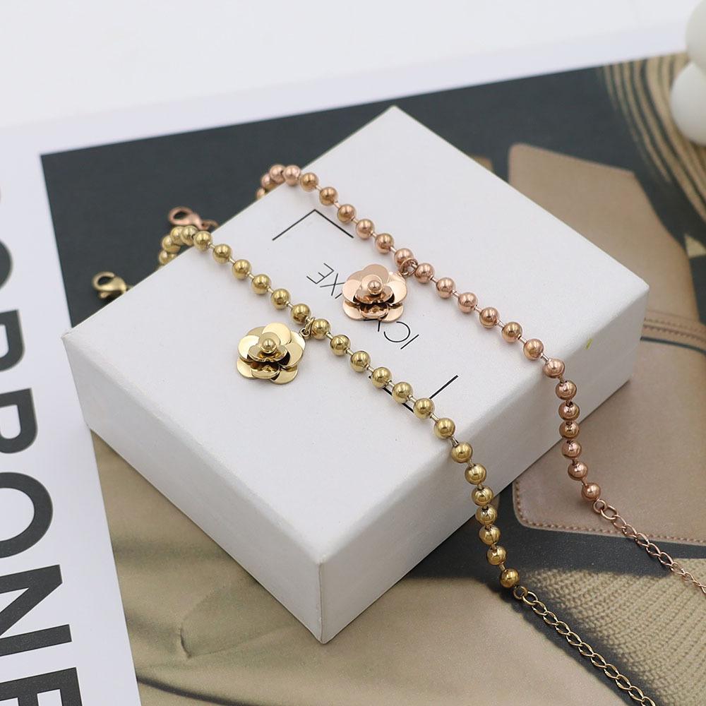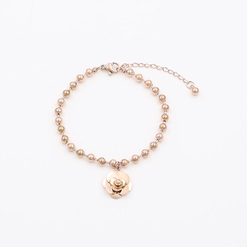 Pulsera de Acero de Titanio con Oro de 18k Simple de Moda para Celebrantes de Internet Pulsera de Flores de Acero de Titanio de Alta Calidad Joyería para Mujeres