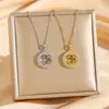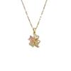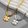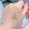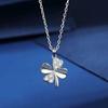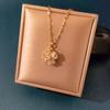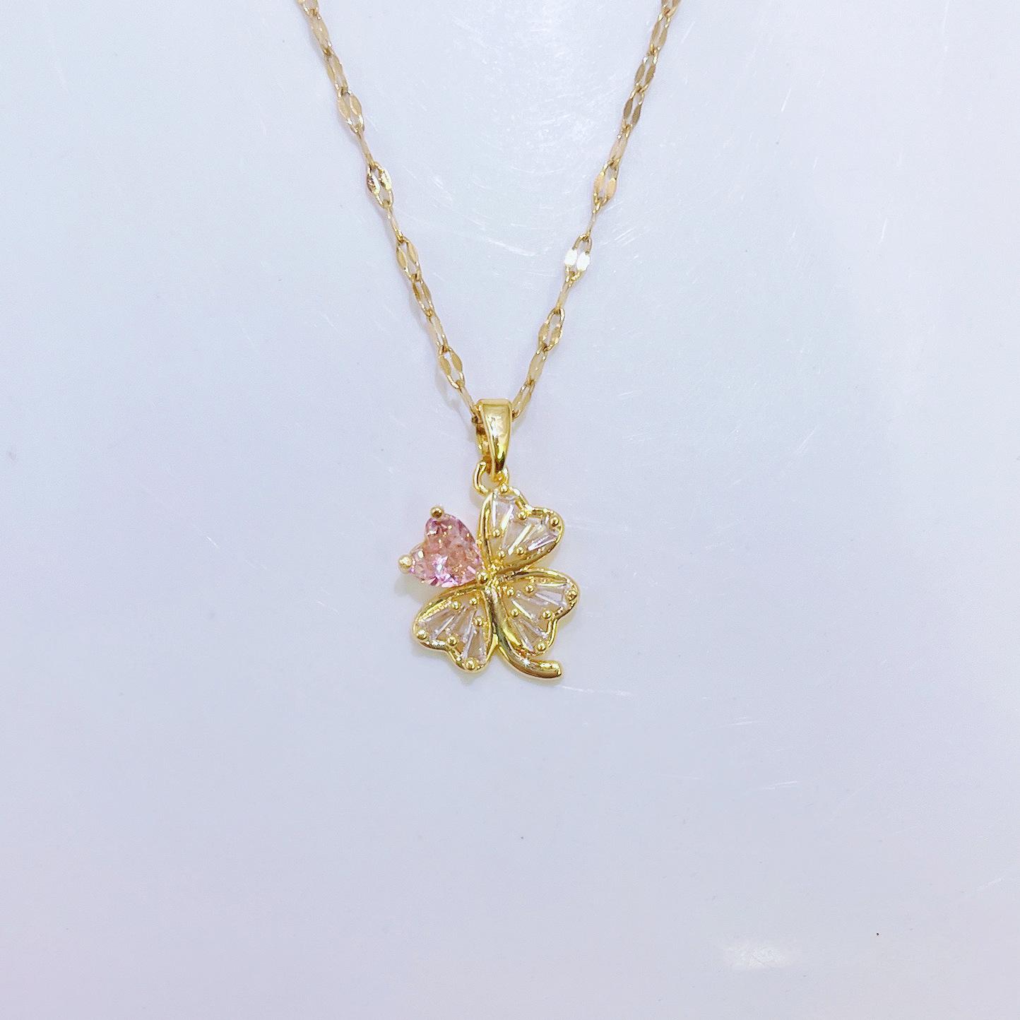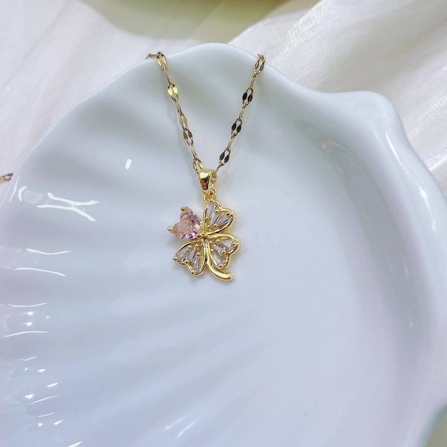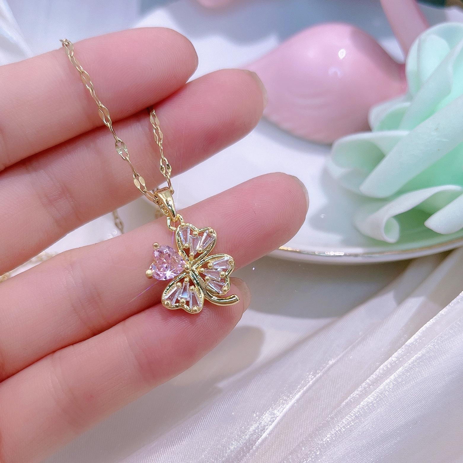[Acero de titanio con baño de oro real] Collar de trébol de cuatro hojas hueco de cristal rosa para mujer, nuevo y moderno collar con microincrustaciones y cierre de suéter.
