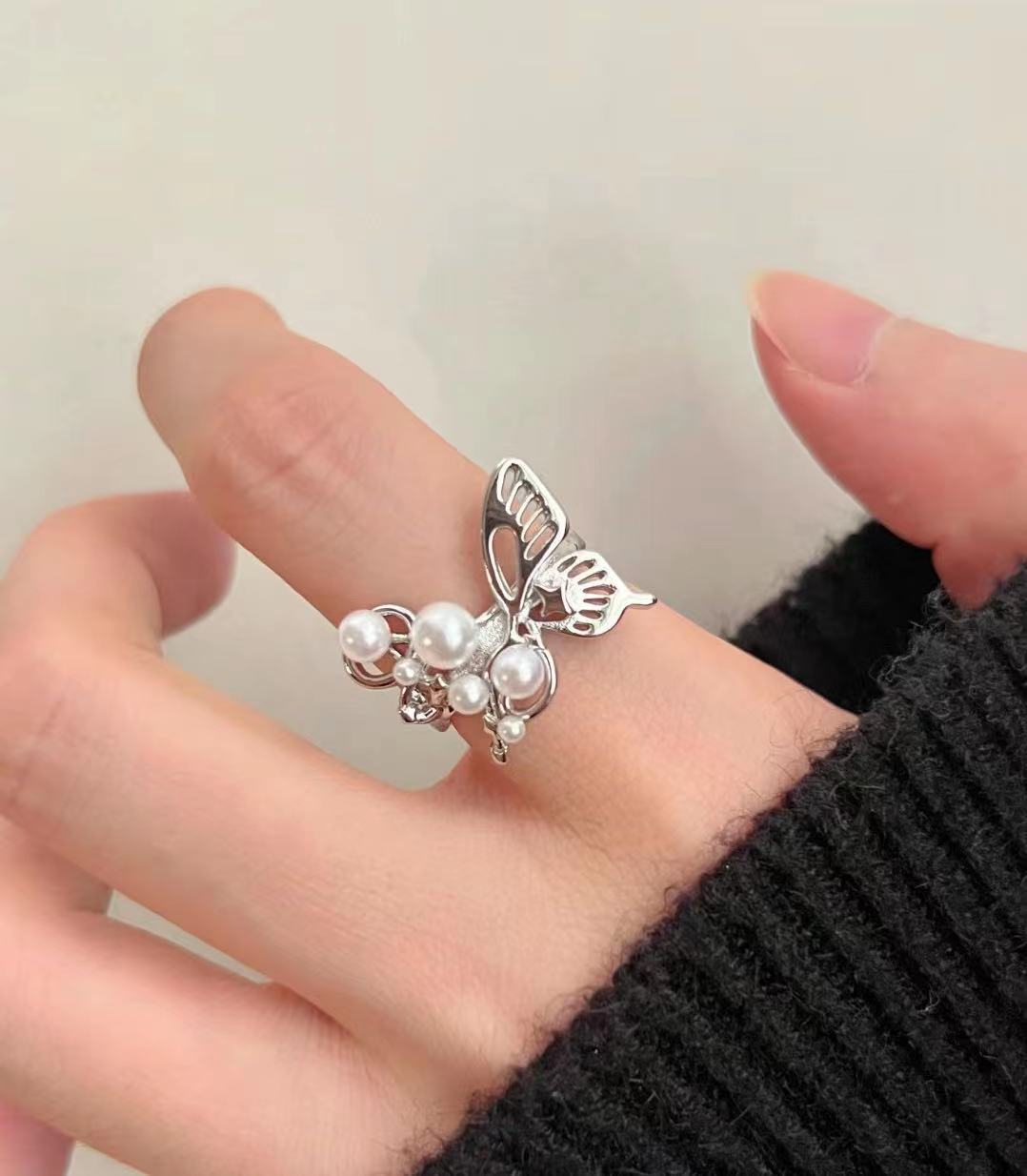 Pearl hollow butterfly [open ring]]