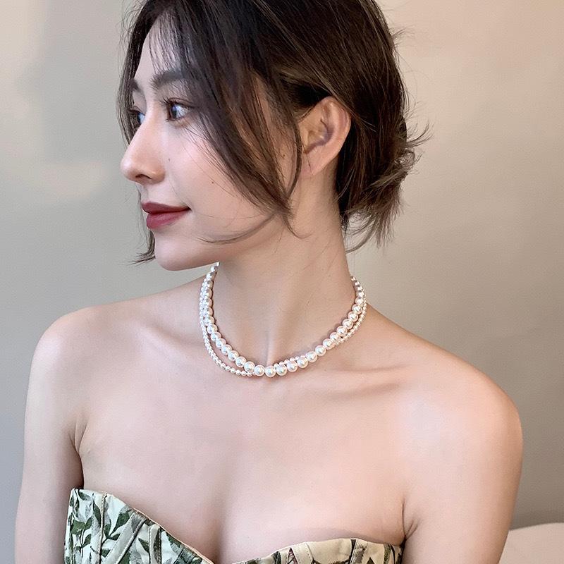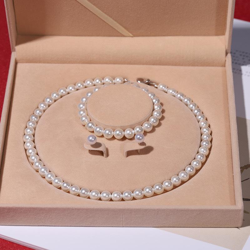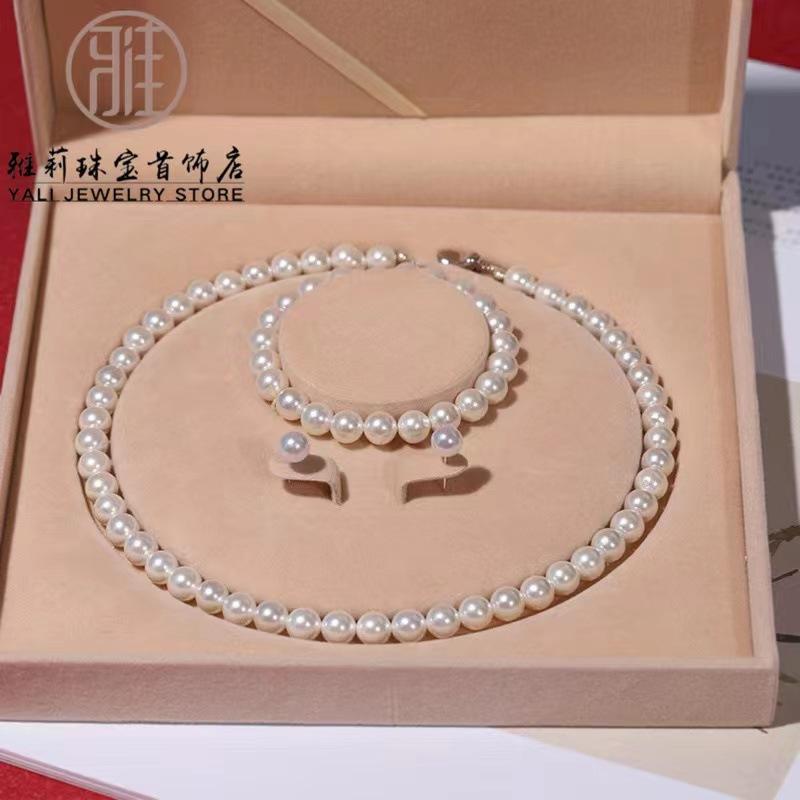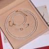 Collar de perlas naturales de aguas profundas para mujer, estilo ins, conjunto de tres piezas, cadena de clavícula, regalo del Día de la Madre, transmisión en vivo.
