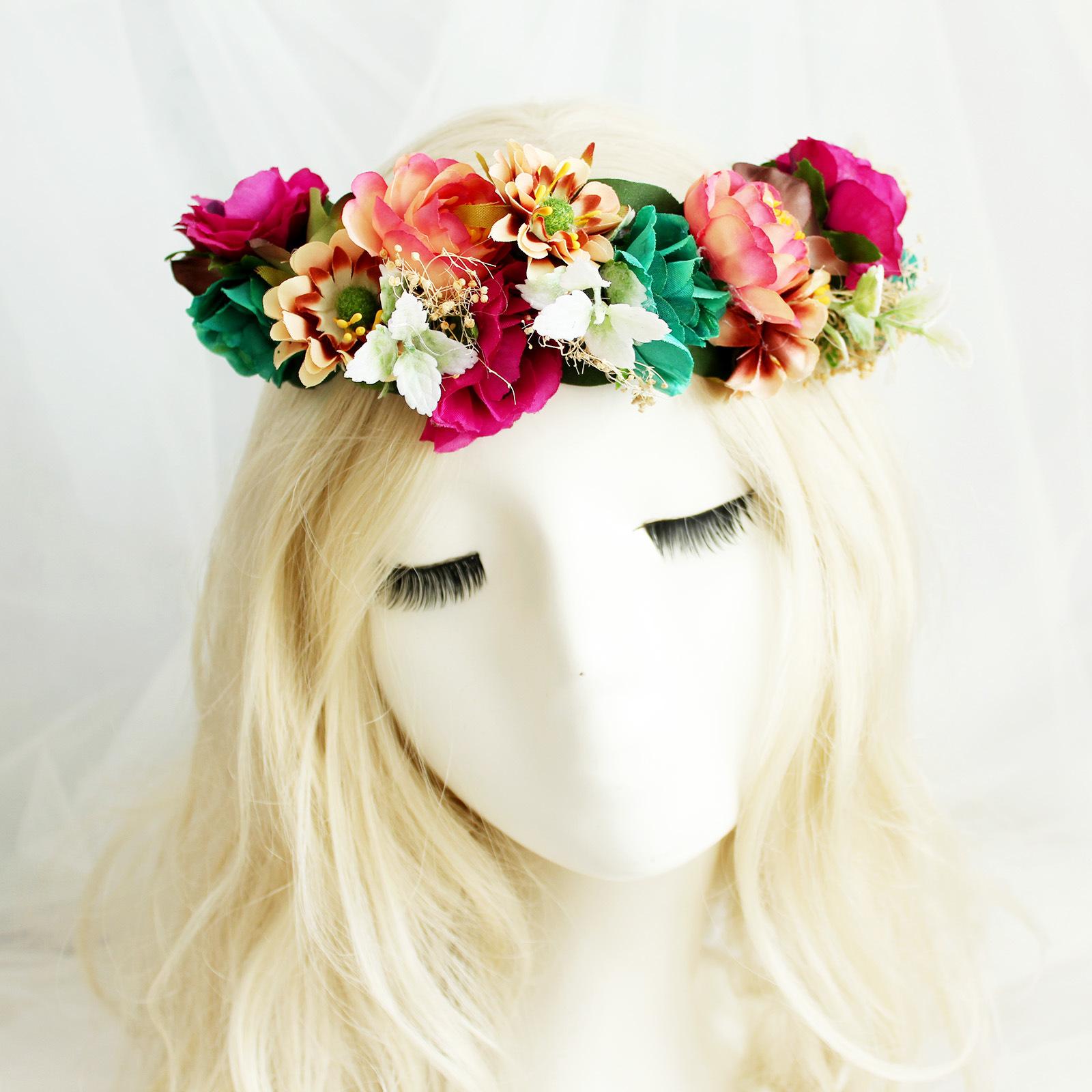 Derivados de flores: accesorios para el cabello de novia, coronas de flores artificiales, ramilletes, horquillas, flores para la muñeca, accesorios florales para zapatos y sombreros, etc.