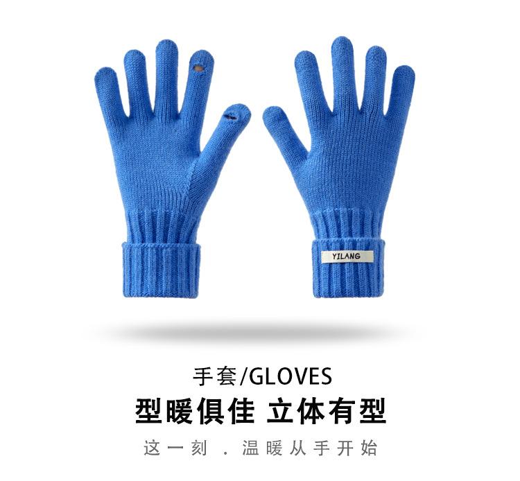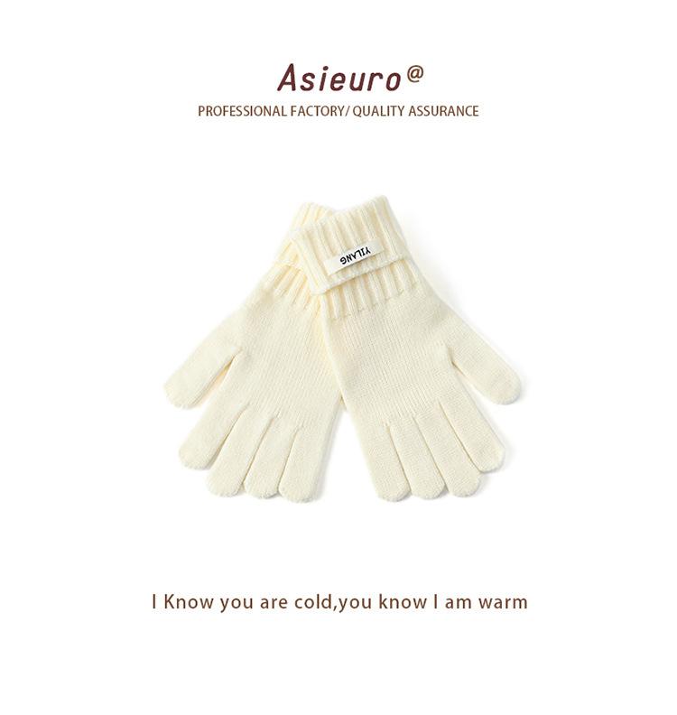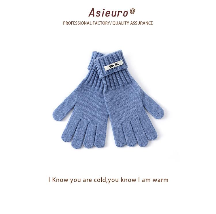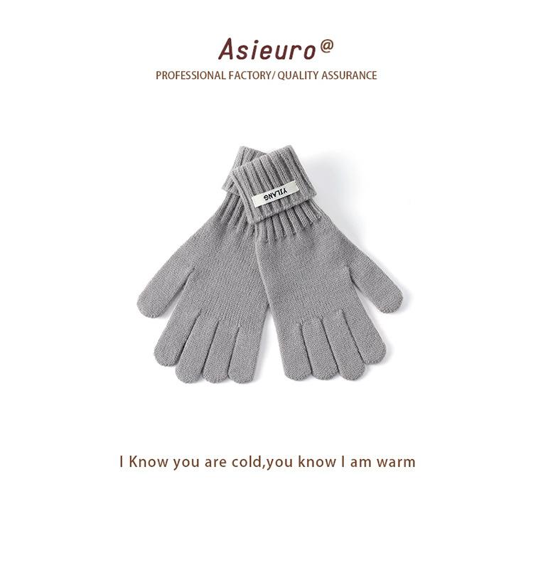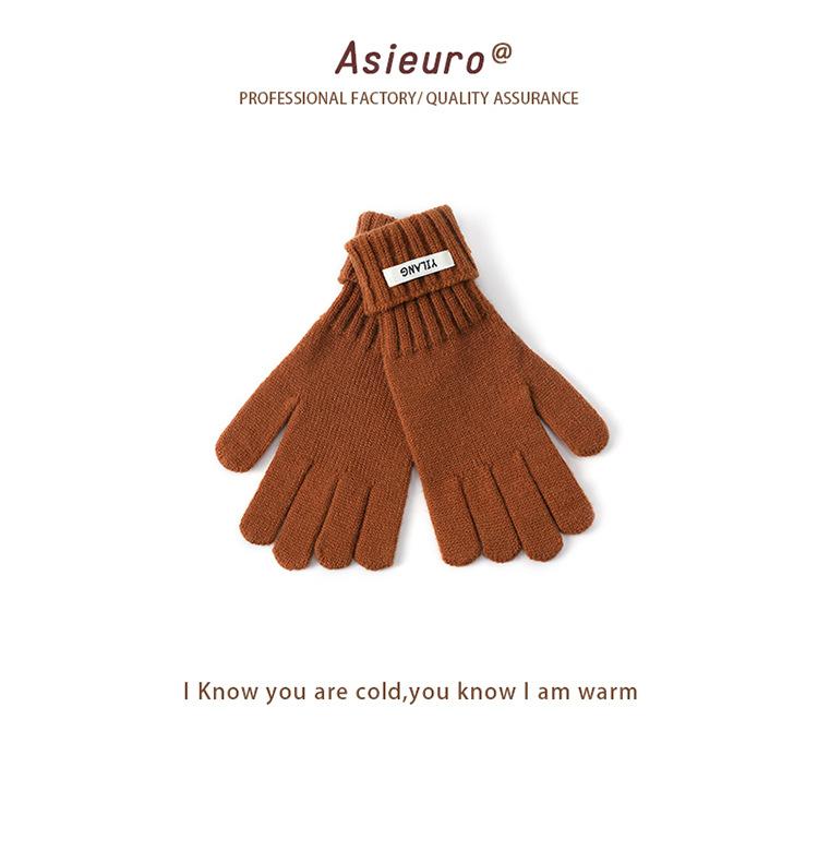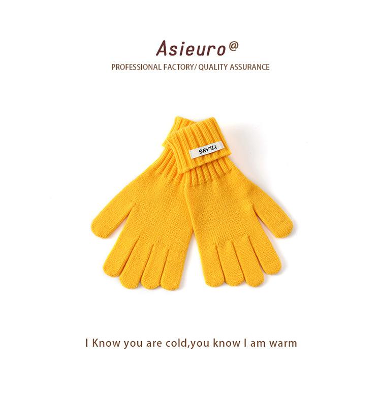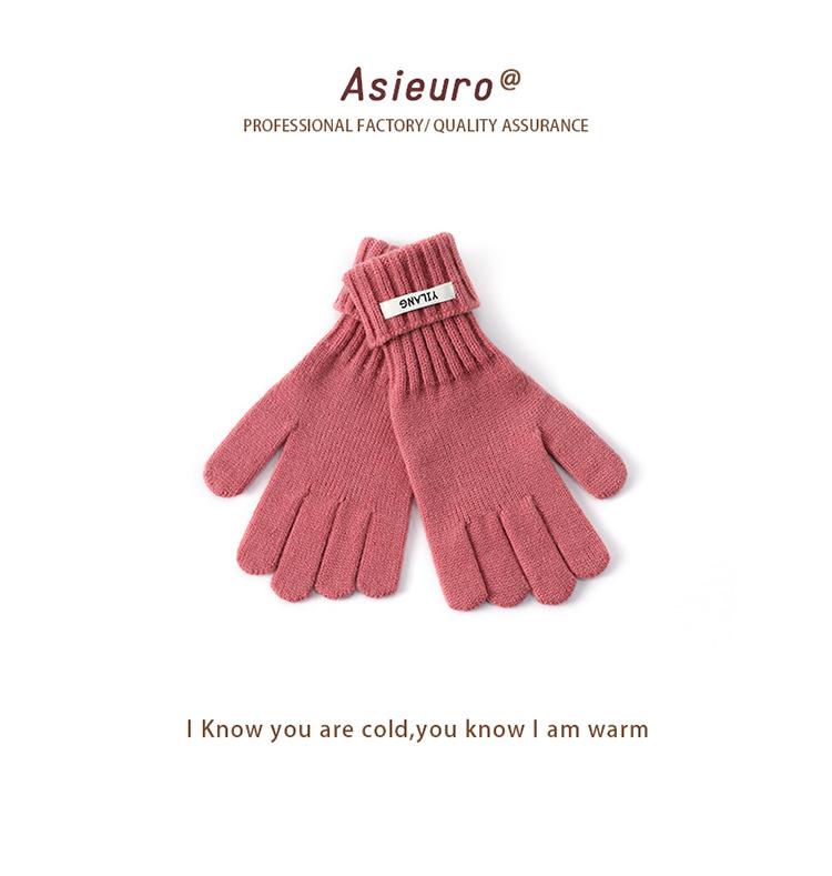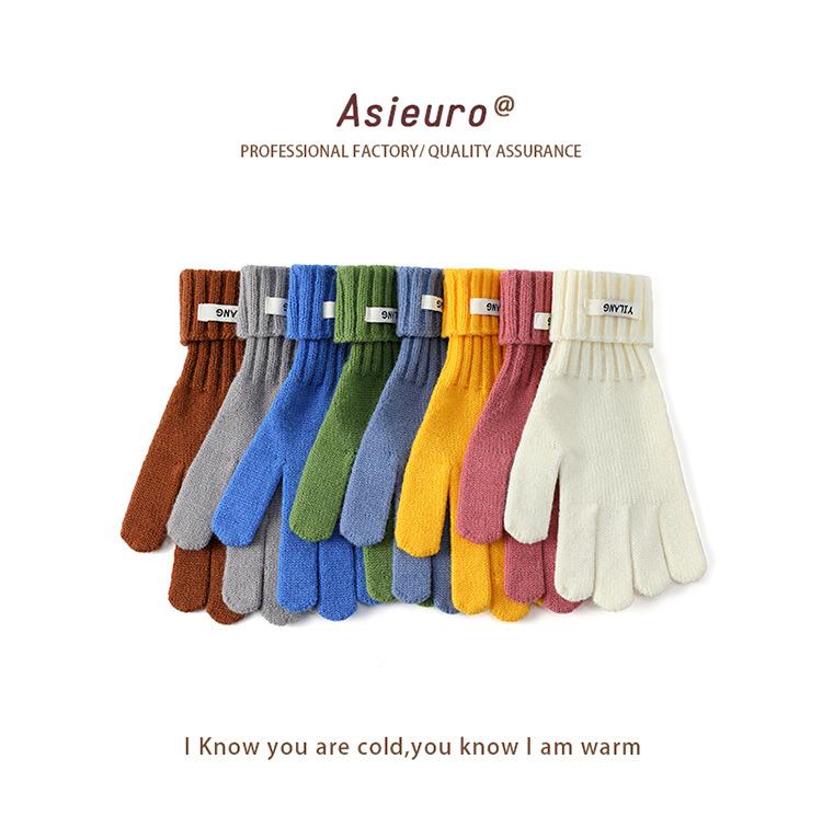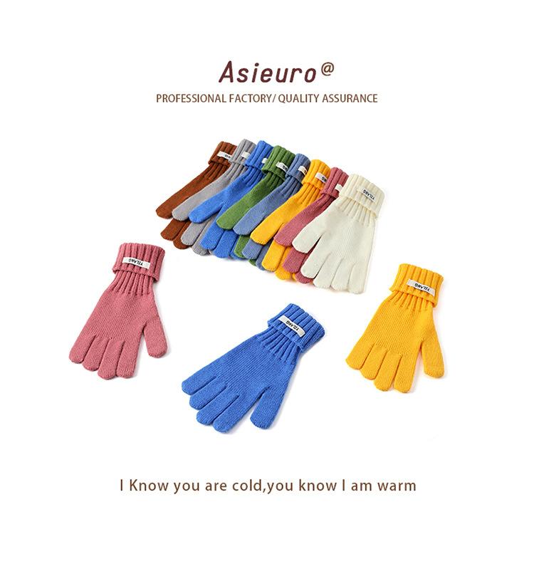 Guantes de Invierno Coreanos para Heattech Cinco Dedos Color Caramelo Pantalla Táctil Pareja Versátil Otoño e Invierno Sin Dedos Tejido de Lana para Heattech