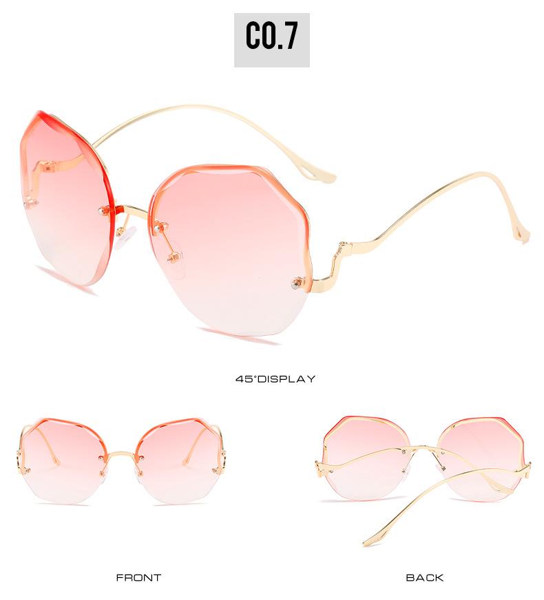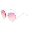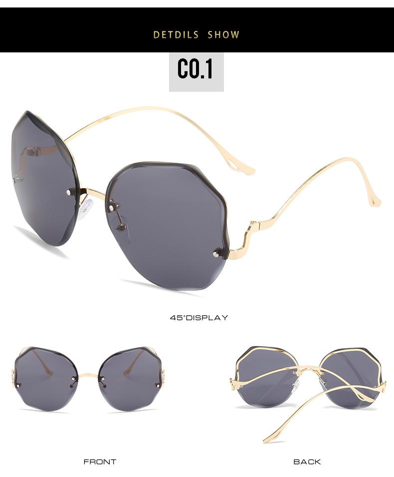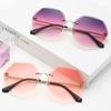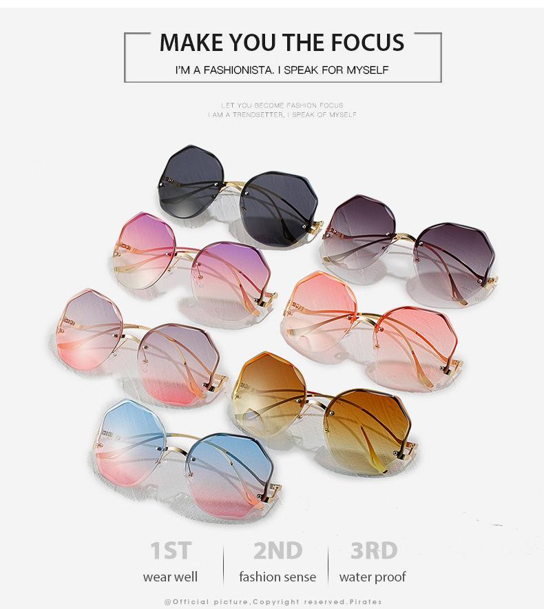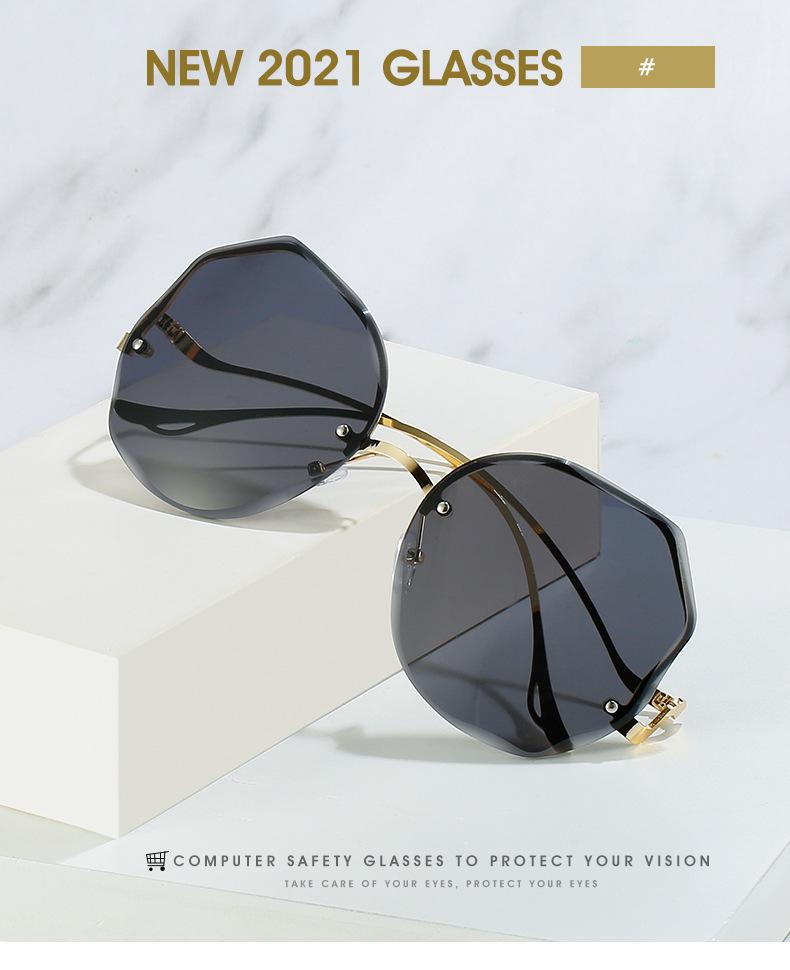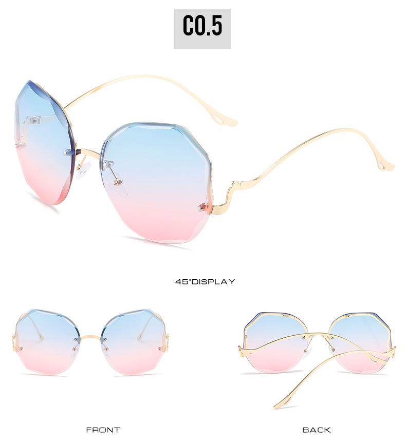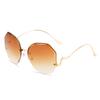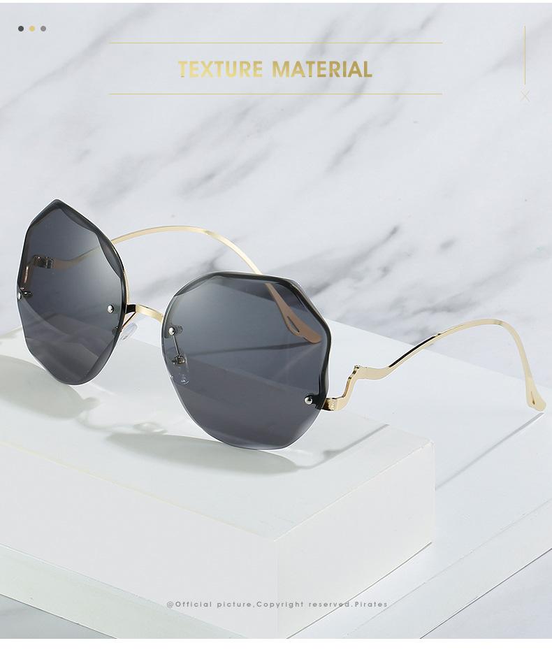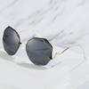 Nuevos Lentes de Sol Poligonales de Celebridad de Internet para Mujeres con Rostros Grandes, Lentes Oceánicas Adelgazantes, Lentes de Sol Sin Montura con Borde Cortado