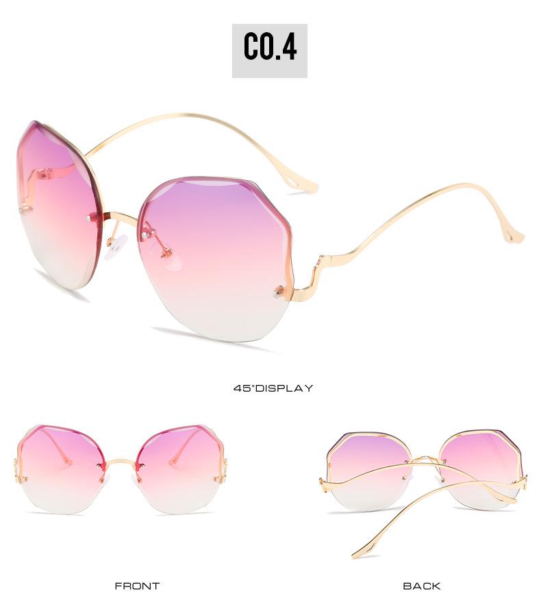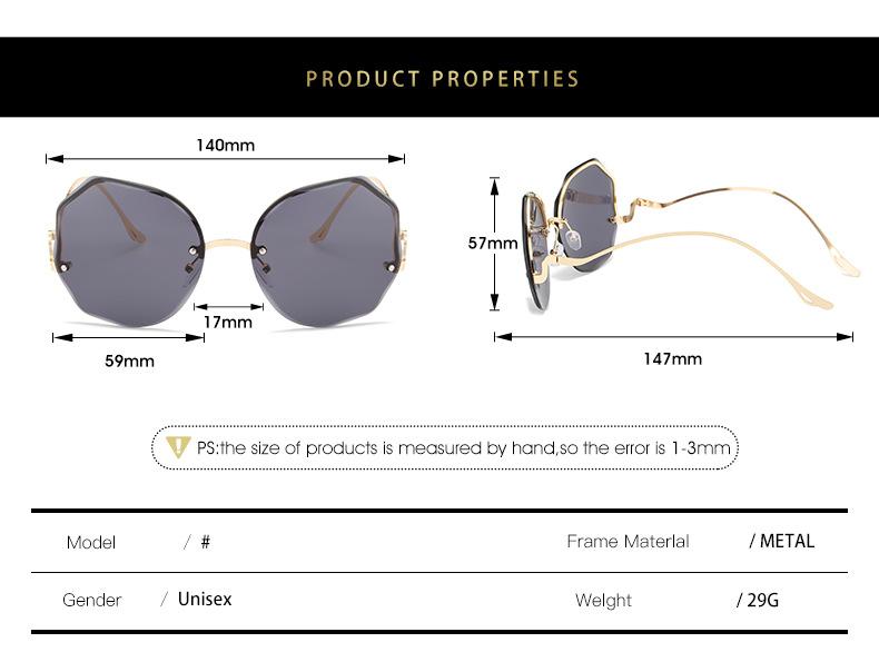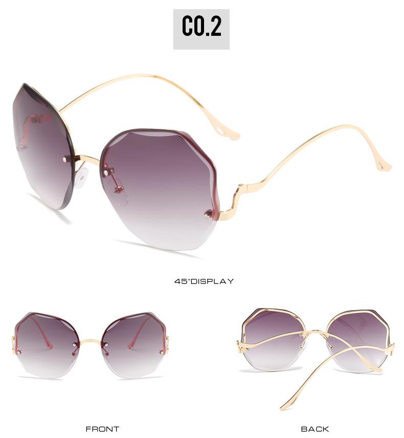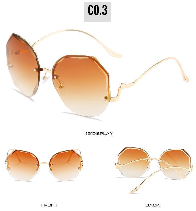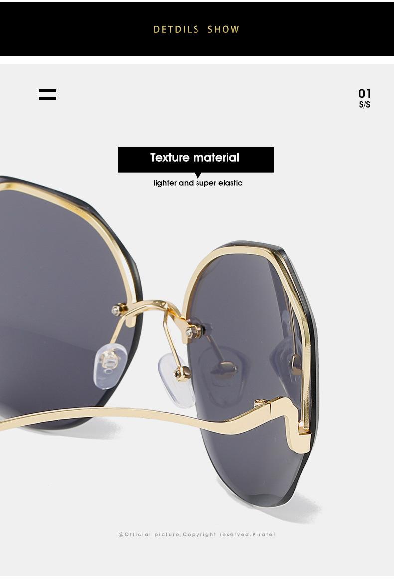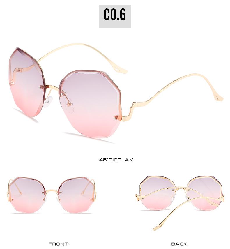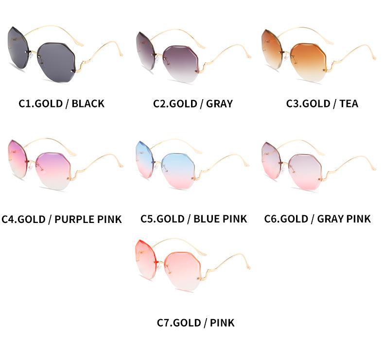 Nuevos Lentes de Sol Poligonales de Celebridad de Internet para Mujeres con Rostros Grandes, Lentes Oceánicas Adelgazantes, Lentes de Sol Sin Montura con Borde Cortado