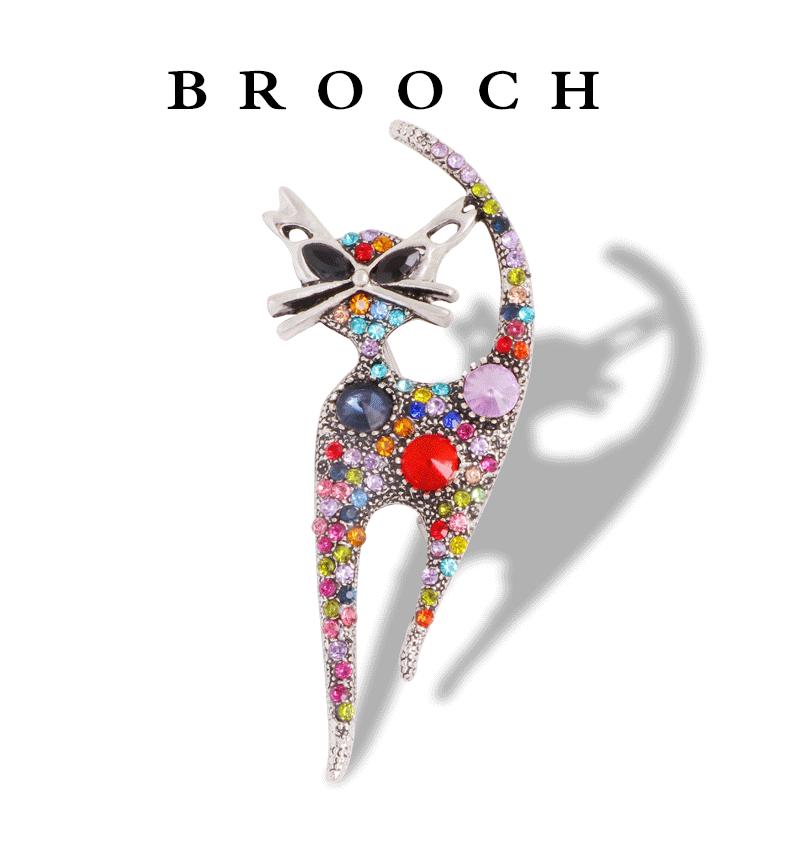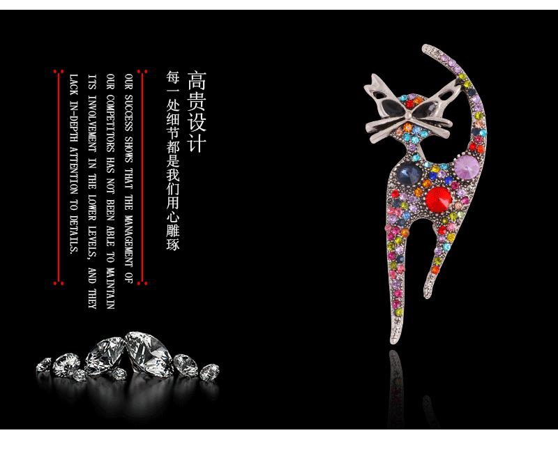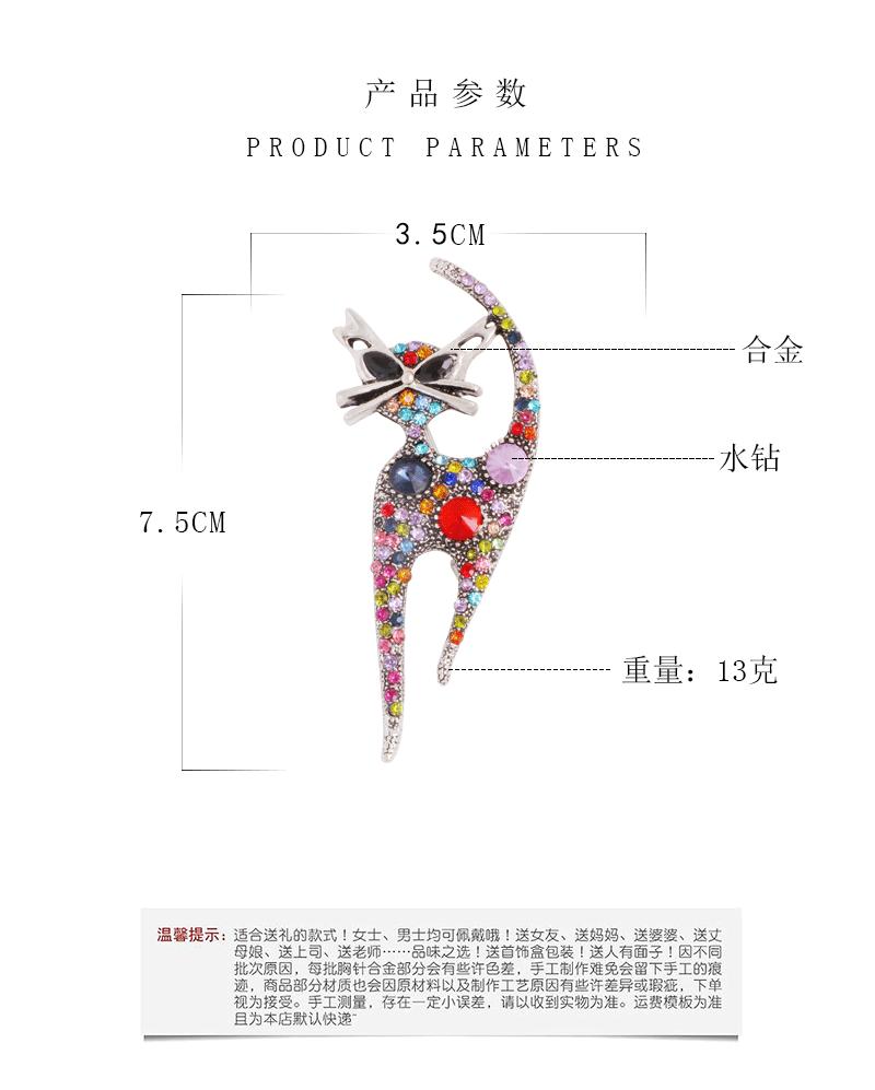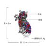 Corsage Europeo y Americano Transfronterizo, Broche de Animal de Gatito Retro Lindo con Pedrería, Exquisito Pin de Solapa de Diamantes para Mujer