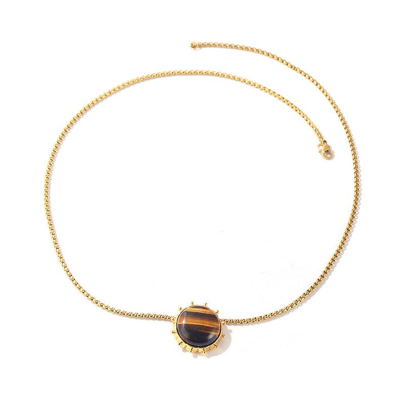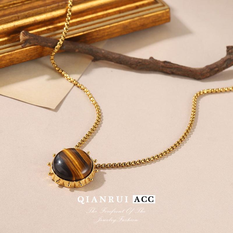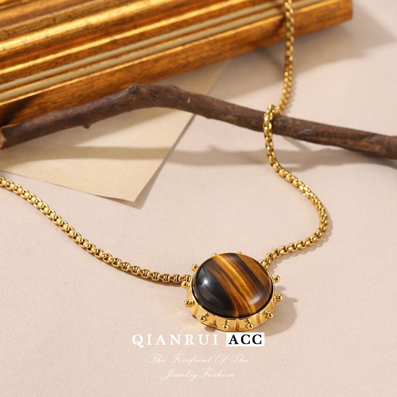 Collar Oval de Ojo de Tigre para Mujer Lujo Ligero Nicho Alta Gama Accesorios Otoño e Invierno Estilo Moda Francesa Joyería Versátil