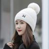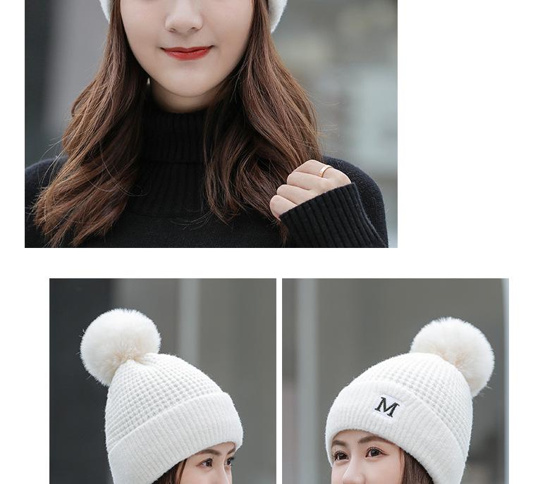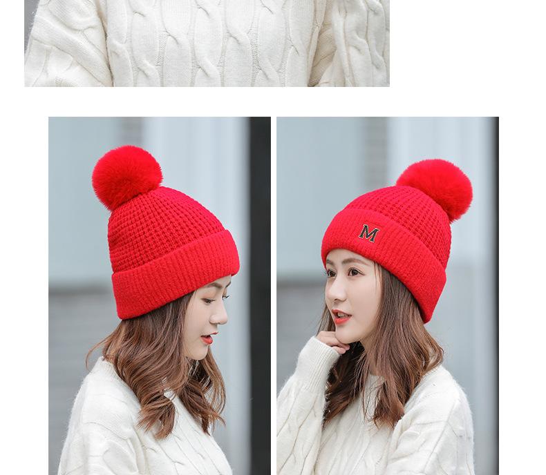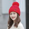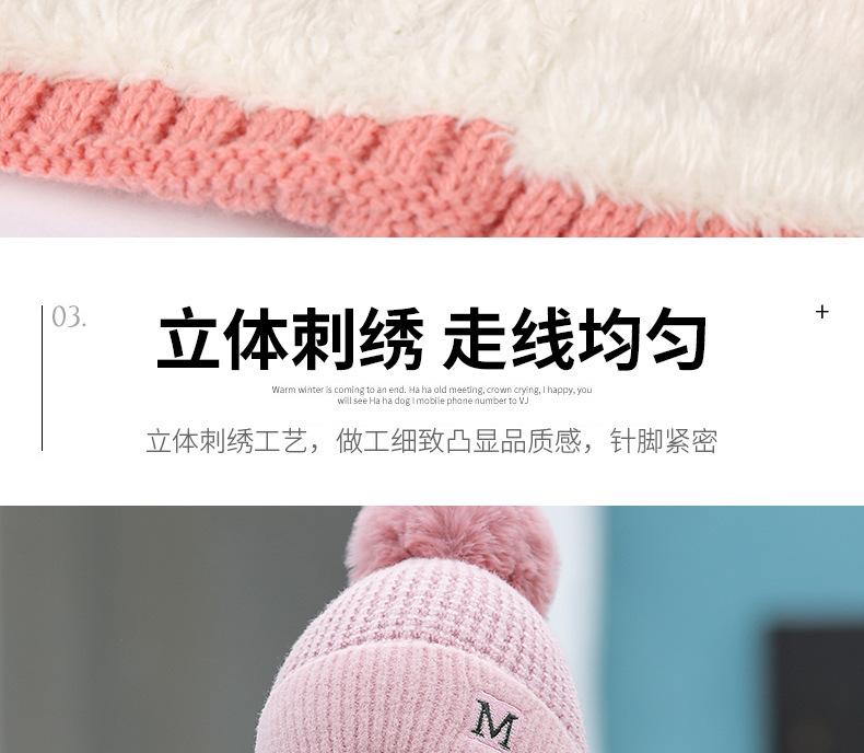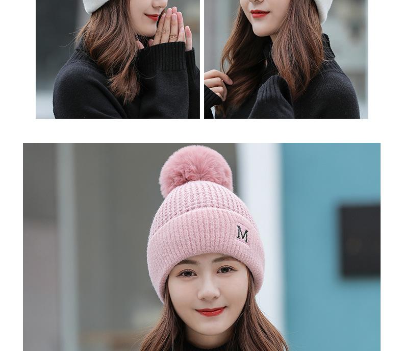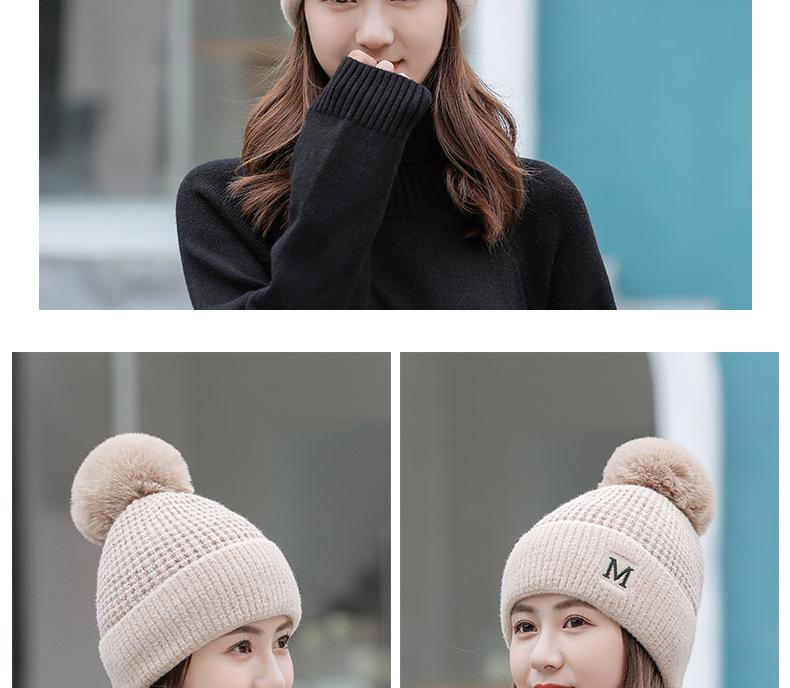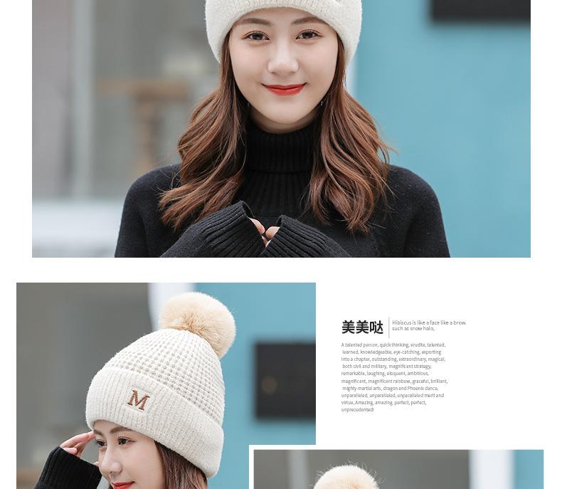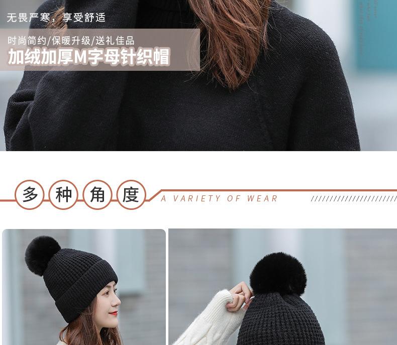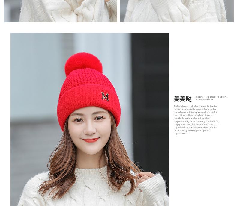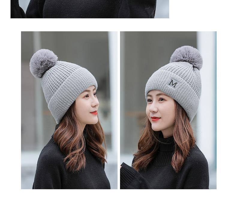Gorro japonés con la letra M, gorro de punto a la moda para mujer, estilo coreano, cálido gorro de terciopelo de invierno, gorro de lana con bola de pelo.