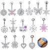 Comercio electrónico transfronterizo, nuevo piercing para el ombligo de acero inoxidable con incrustaciones de cobre y circonita, diseño de flor y mariposa, joyería de moda para perforar el ombligo.