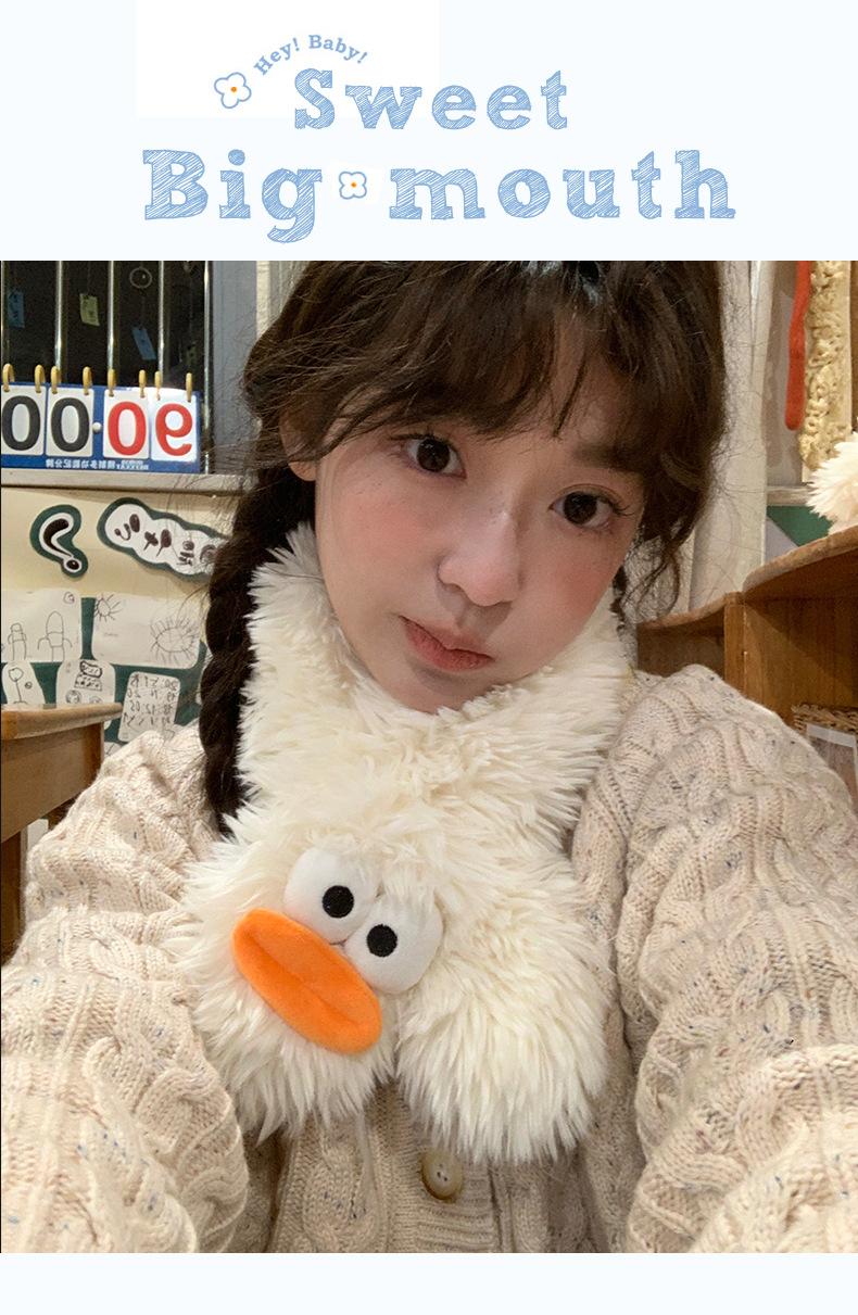 Bufanda divertida de felpa cálida cómoda invierno casual personalidad combinable larga piel boca grande caricatura protección para el cuello bufanda a prueba de frío