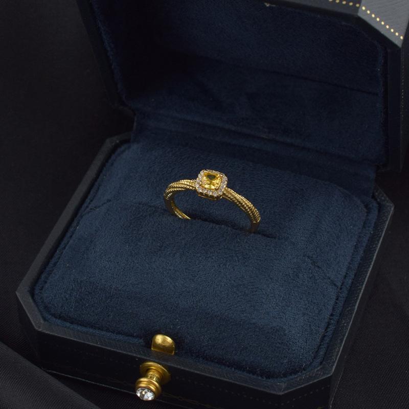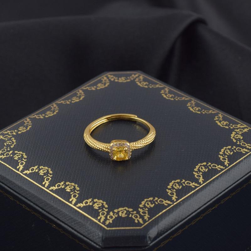 Anillo Abierto Cuadrado Pequeño de Diamante Amarillo Único para Mujer, Estilo Lujo Ligero, Moderno, Personalizado, Exquisito, Versátil, Tendencia de Anillo de Dedo Índice de Alta Gama