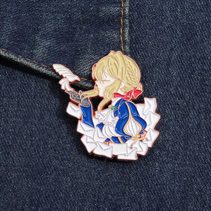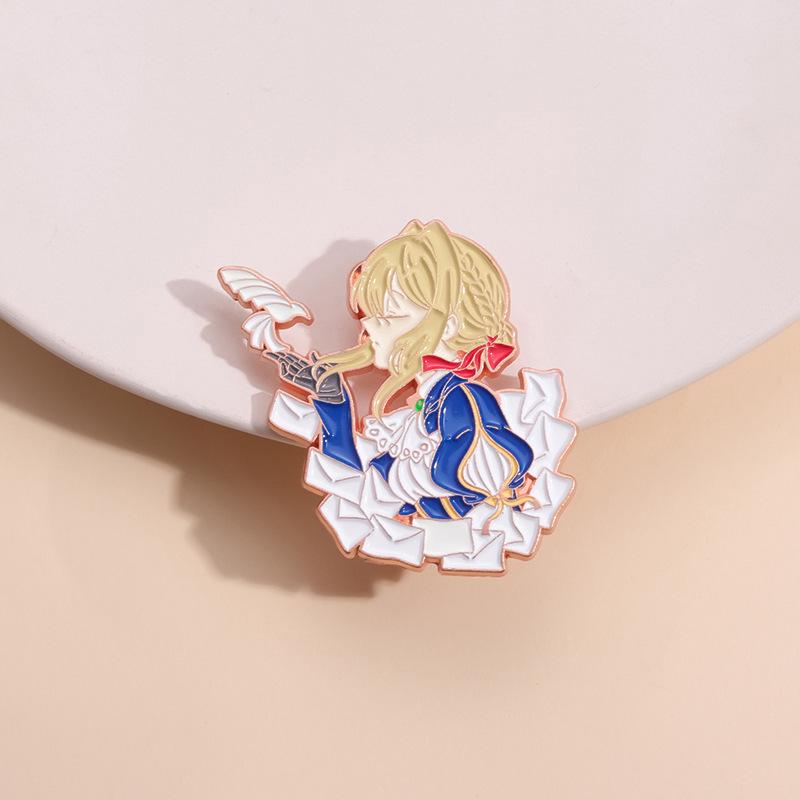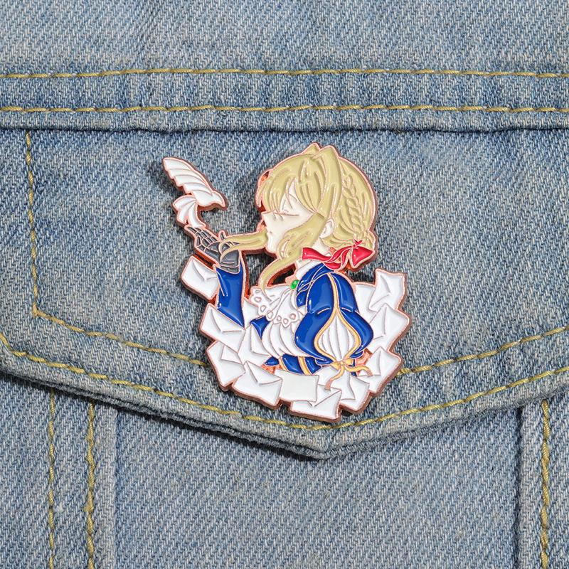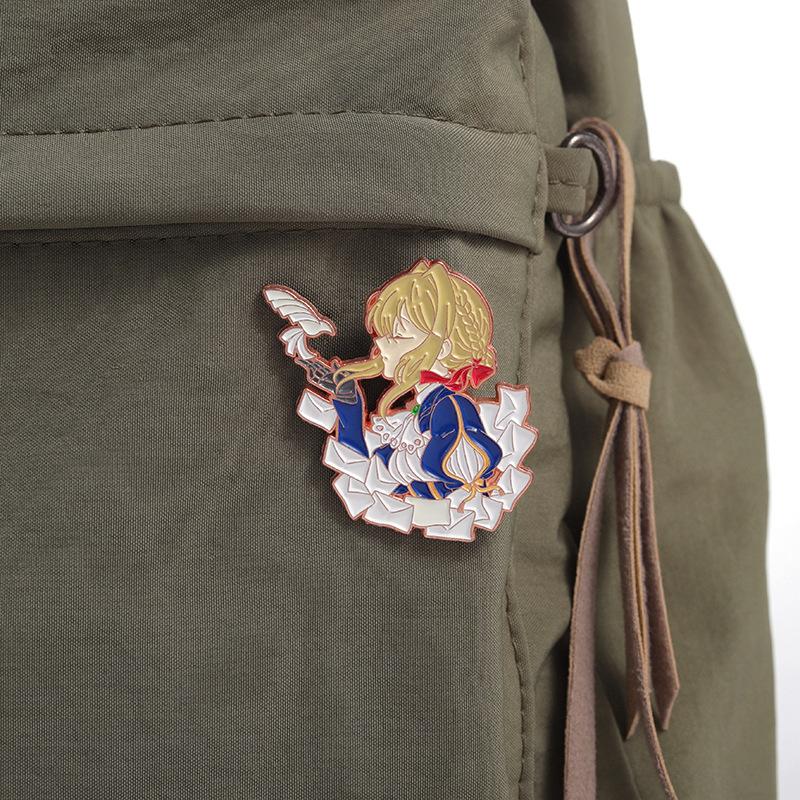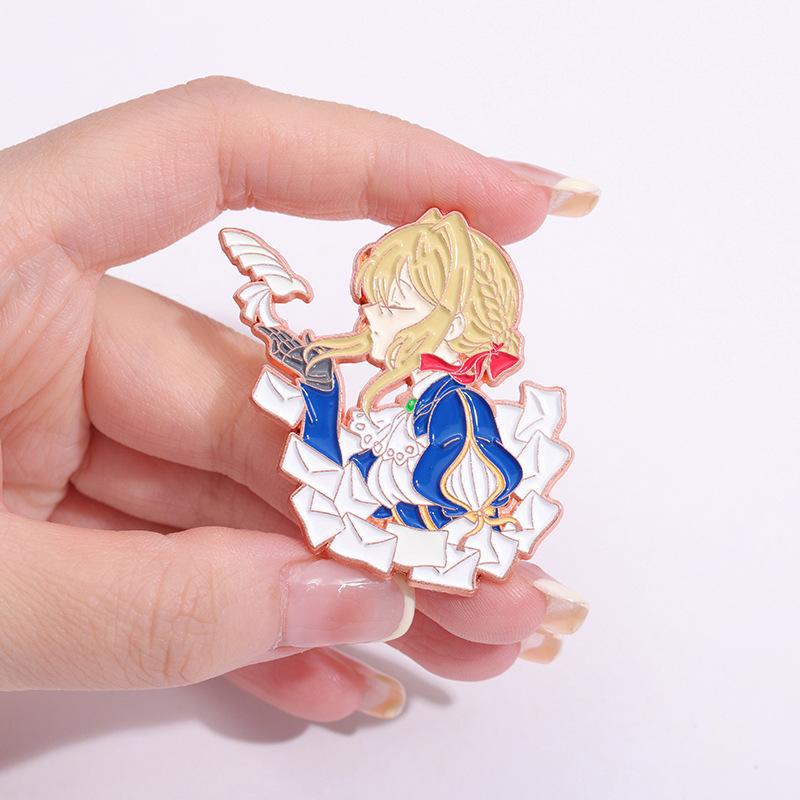 Insignia metálica bidimensional periférica de dibujos animados de películas y televisión con forma de personaje de dibujos animados, broche de niña pequeña, accesorios de ropa