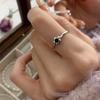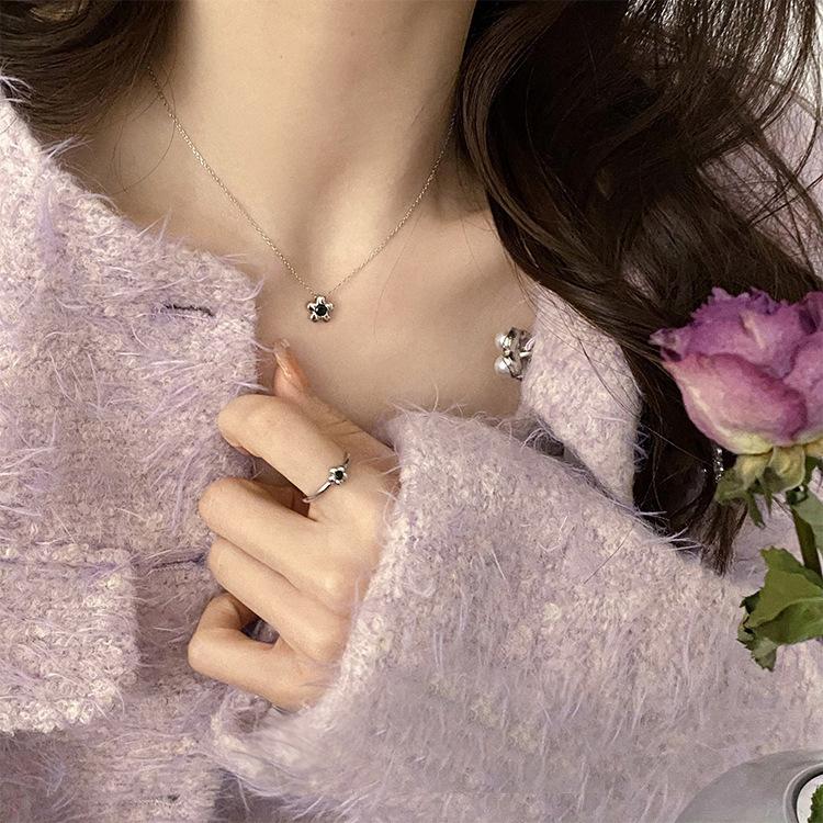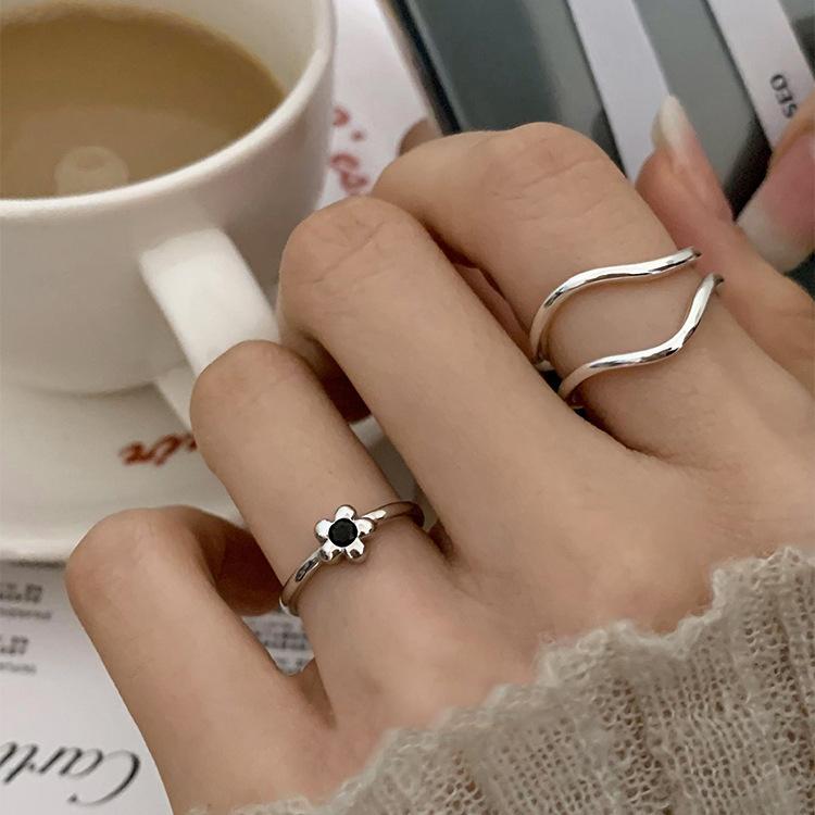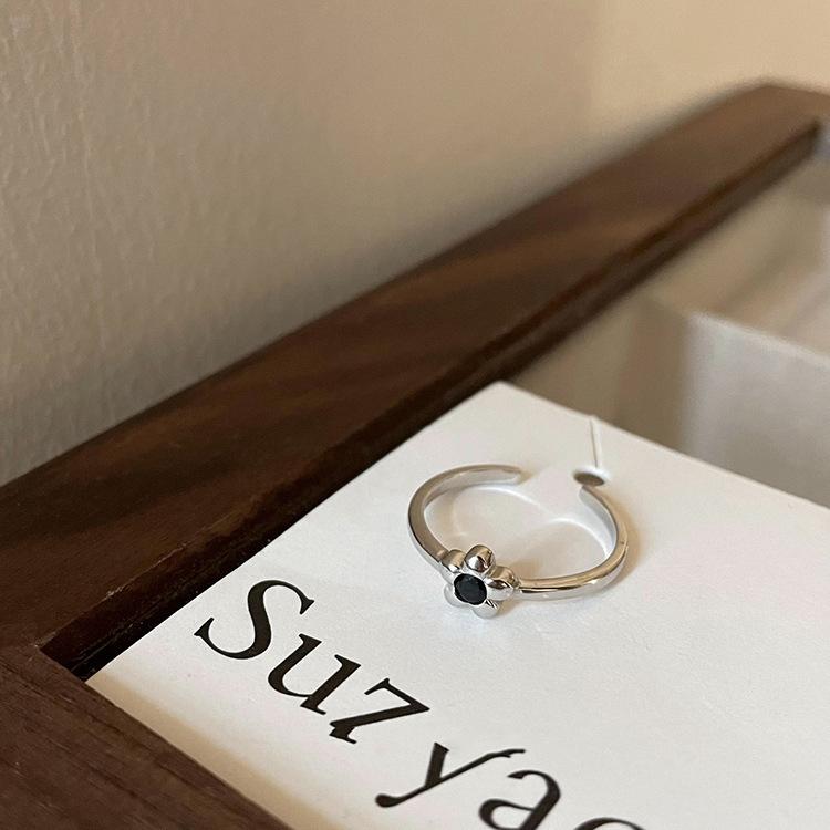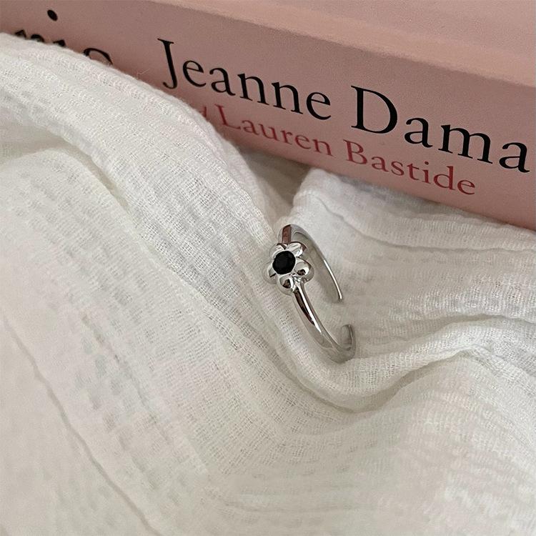 Anillo de Flor Pequeña con Zirconia y Pedrería Negra, Diseño de Nicho, Sentido del Diseño, Simple, a la Moda, Distintivo, Anillo para el Dedo Comida de Mujer