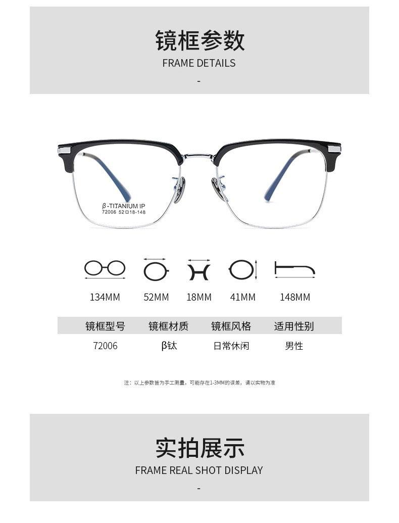 Nuevos Lentes Danyang Ultraligeros de Titanio Puro de Montura Completa Moda Retro Titanio Beta Se Pueden Equipar con Lentes para Miopía 72006