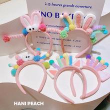 HD9486 Diadema con orejas de zorro estilo coreano con resorte y giro, color de contraste, tocado para el cabello lavado de cara dulce para mujer |