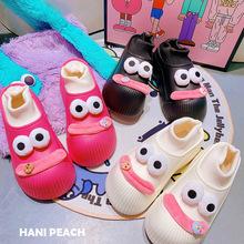 HD1027A06 Pantuflas de algodón con tacón cálido y divertido de ojos grandes para otoño e invierno, gruesas, para uso doméstico y exterior. |