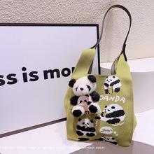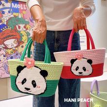 Bolso de mano de viaje HD9112 con diseño de nicho, tejido a mano, con diseño de panda en tres dimensiones, para mujer |