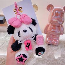 HD9136A07 Lindo llavero con forma de panda con lazo para mascota, lindo colgante de mochila escolar para coche con dibujos animados |