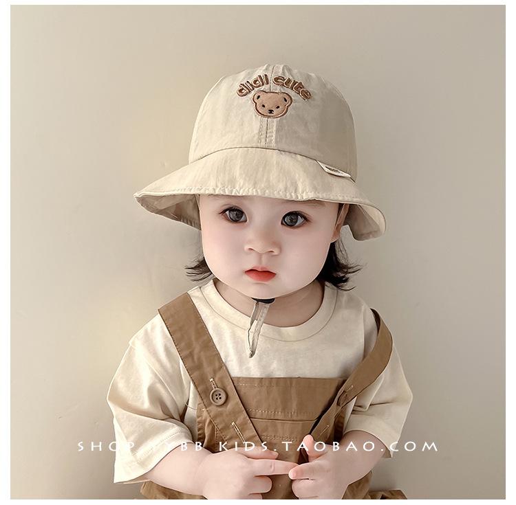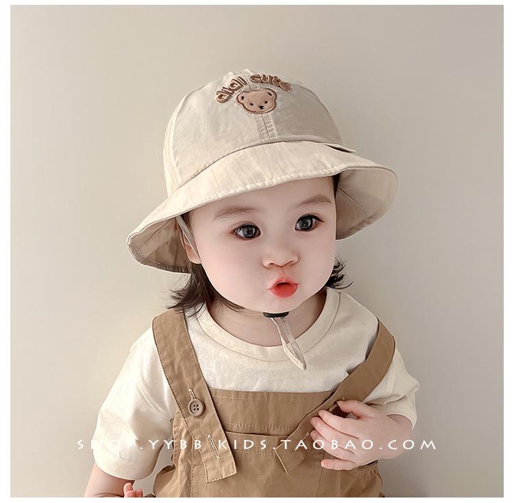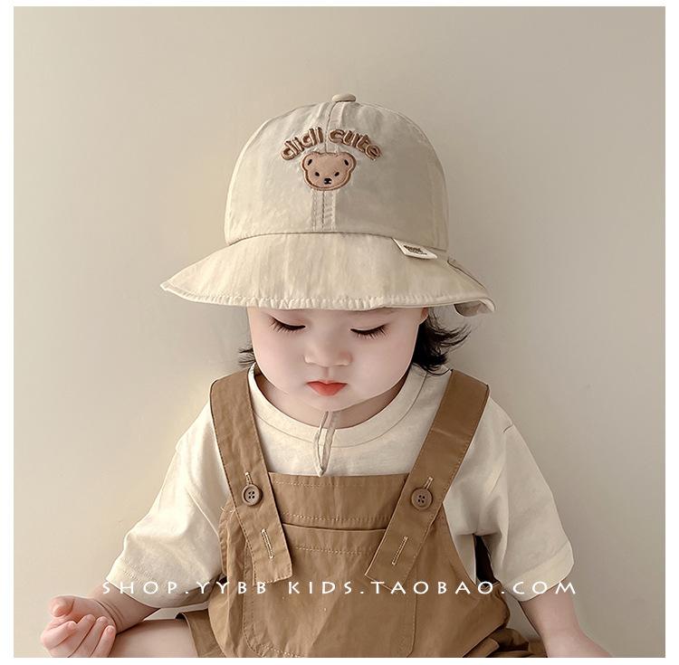Sombrero infantil primavera y otoño delgado sombrero para el sol niños y niñas bebé lindo oso viaje versátil verano pescador sombrero de cubo marea