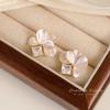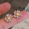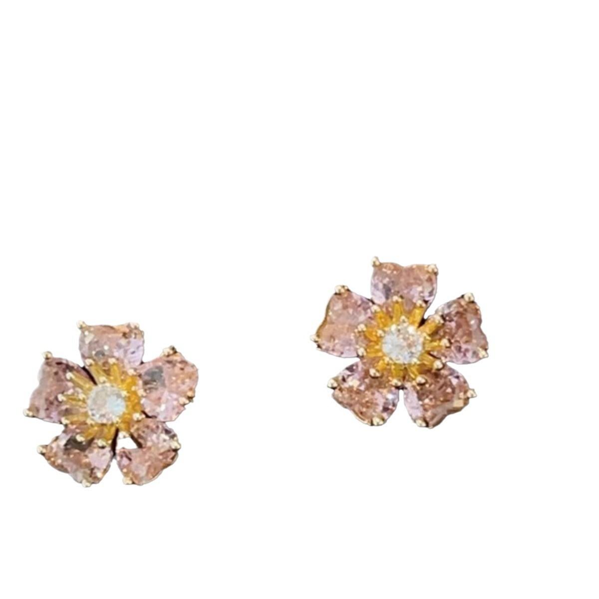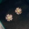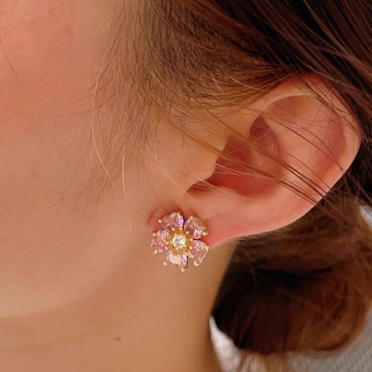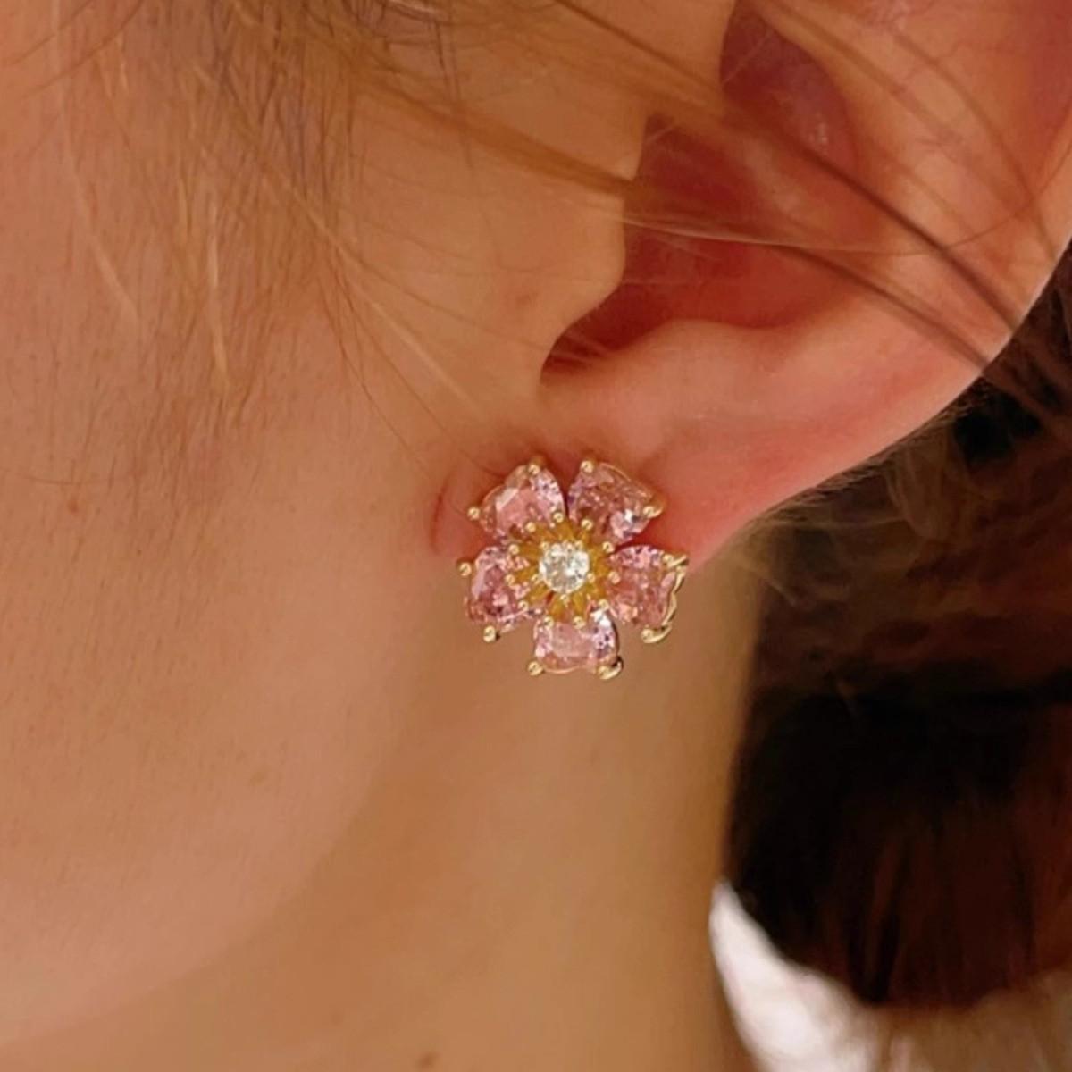 Aretes de Flores Rosas para Mujer 2024 Nuevos Aretes Pequeños de Solapa de Cinco Flores Lujo Ligero Aretes Altos Elegantes