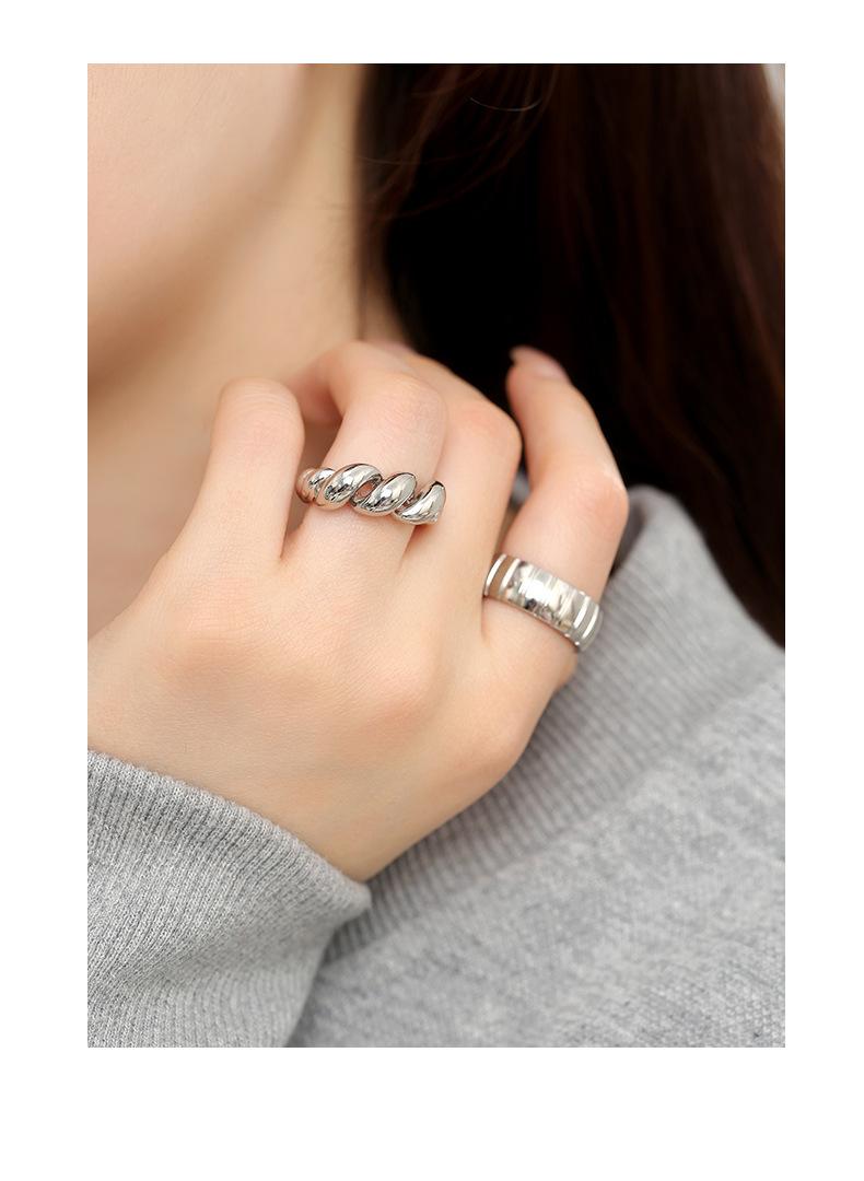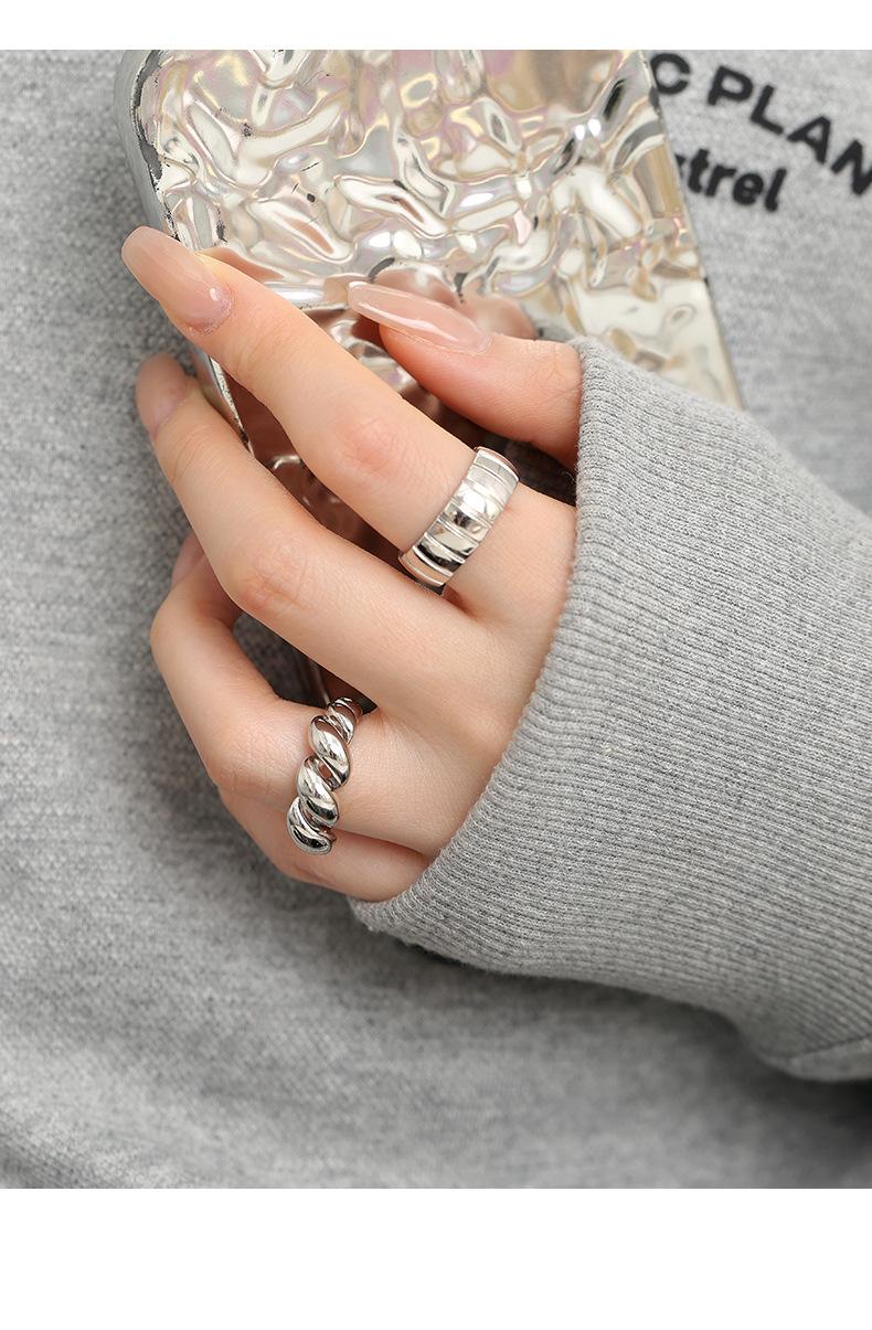 Anillo Giratorio para Mujer Línea Enrollada Ancho de Ala Raya Plata S925 Personalizado Abierto Anillo de Dedo Celebridad Cibernética Todo Combinable Anillo de Dedo Moderno