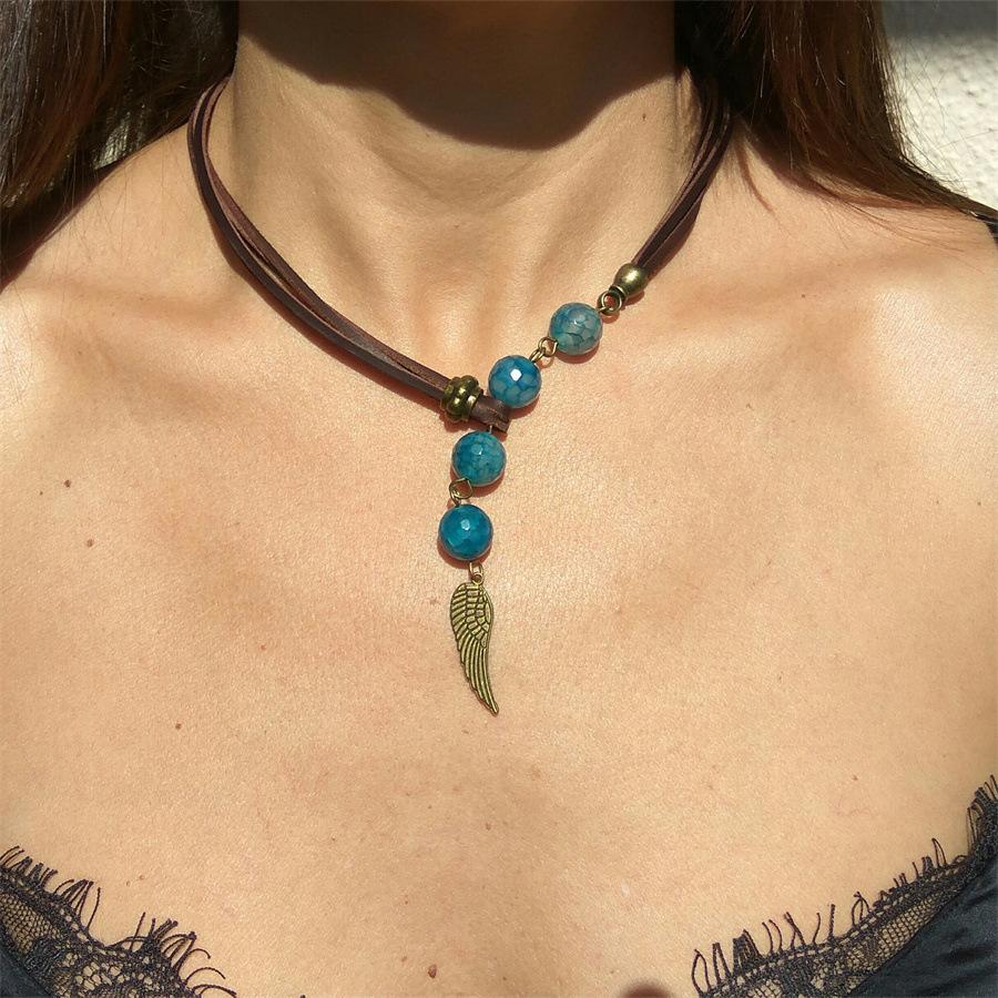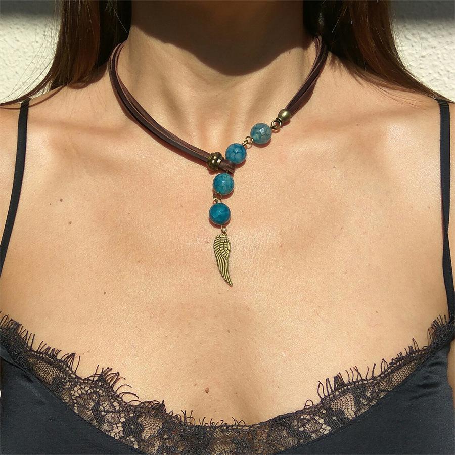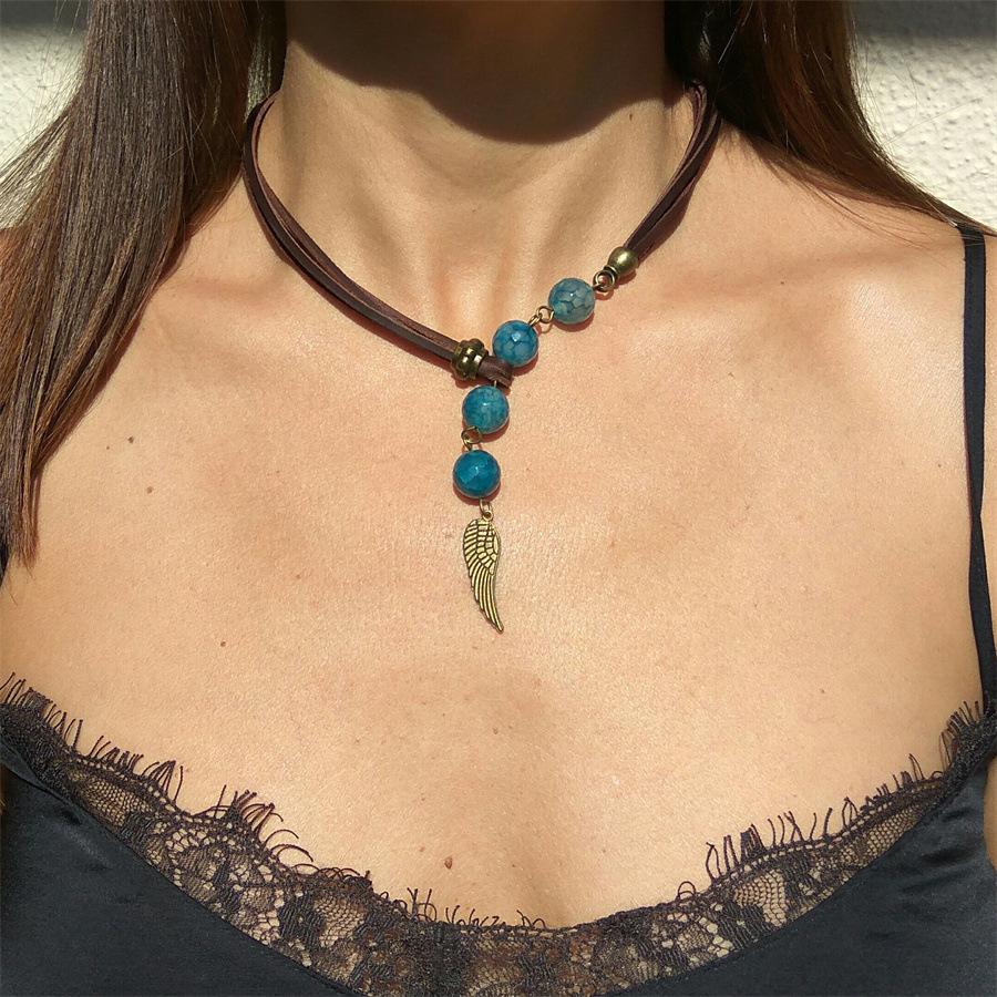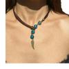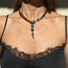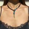 [Nombre del Producto] Collar colgante de aleación de piedra natural de terciopelo coreano bohemio nuevo europeo y americano, cadena para clavícula ajustable, collar hecho a mano