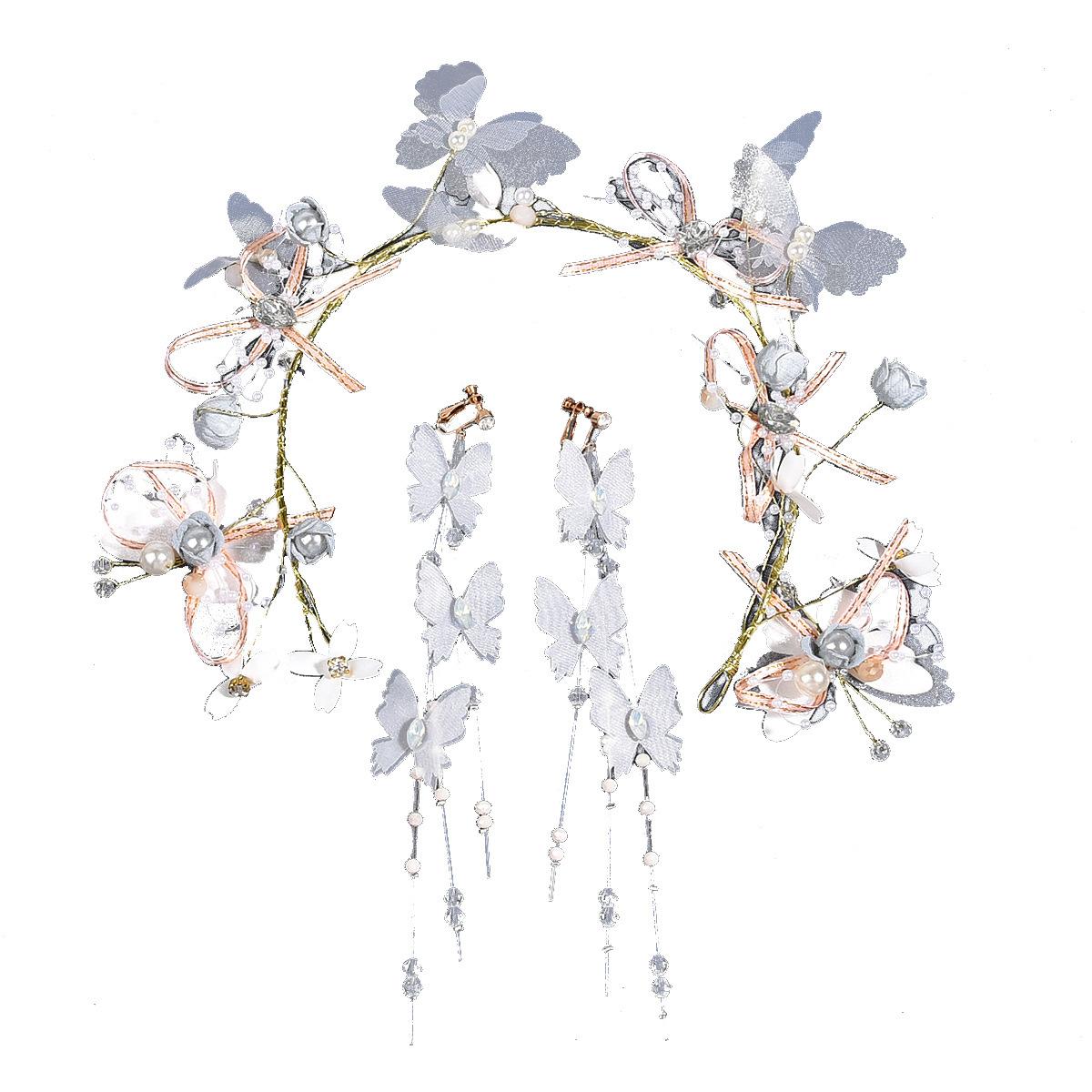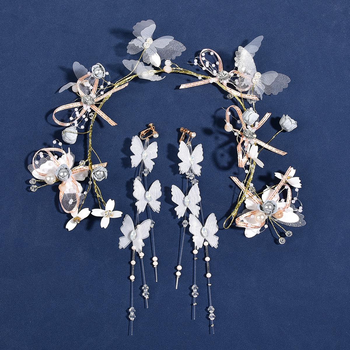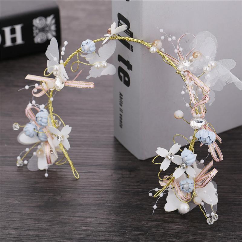 2020 Super Hada de Color para Niños Diadema Corona Guirnalda Clip Lateral Tiara Nupcial Conjunto de Joyas de Mariposa y Flor Juansha