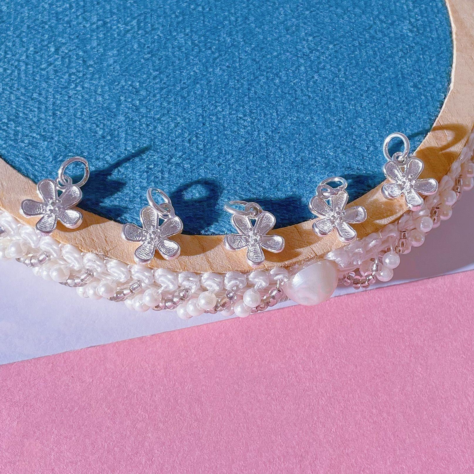 Accesorios de flor de cinco pétalos plateados exquisitos lindos compactos DIY moda atmósfera de alto nivel haciendo pulsera collar