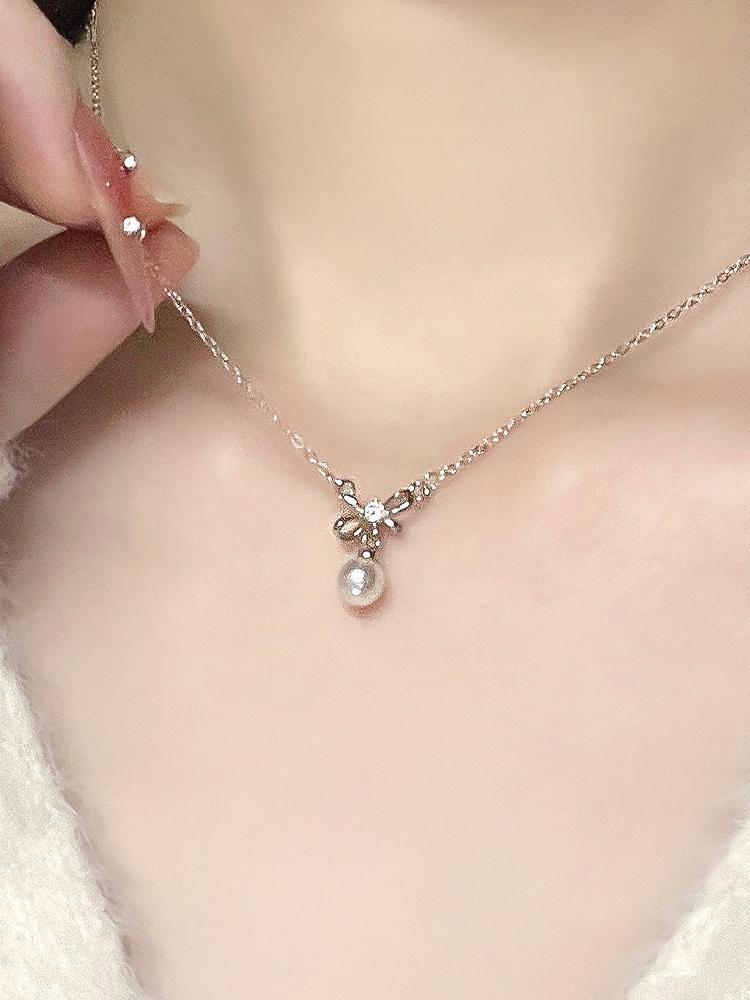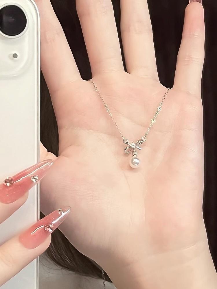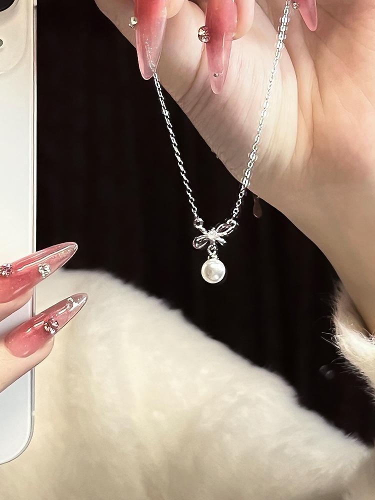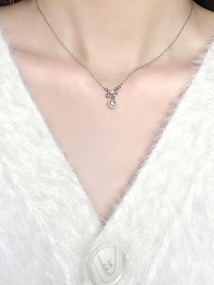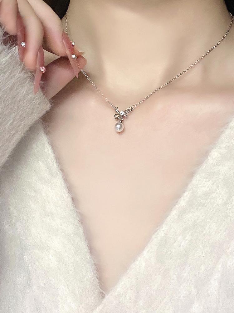 Bow pearl necklace (White Diamond), Bow pearl necklace (pink diamond)