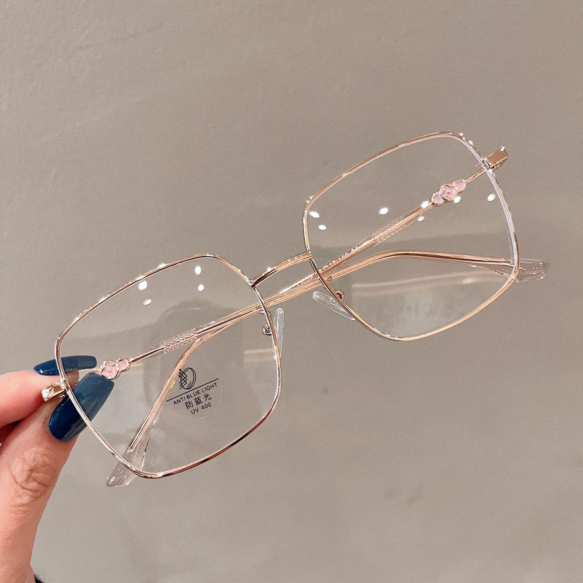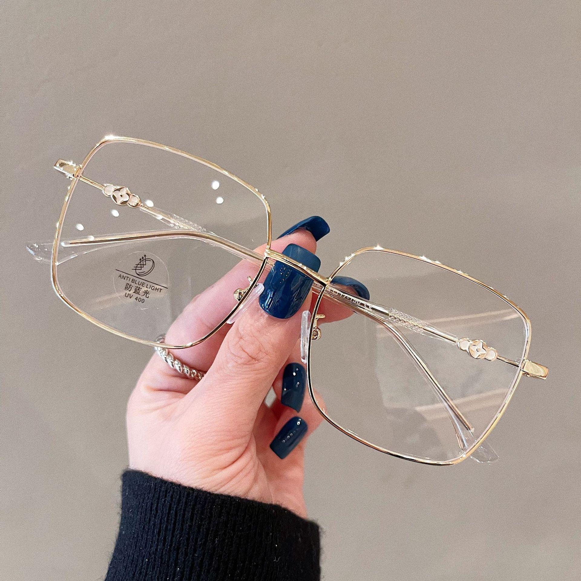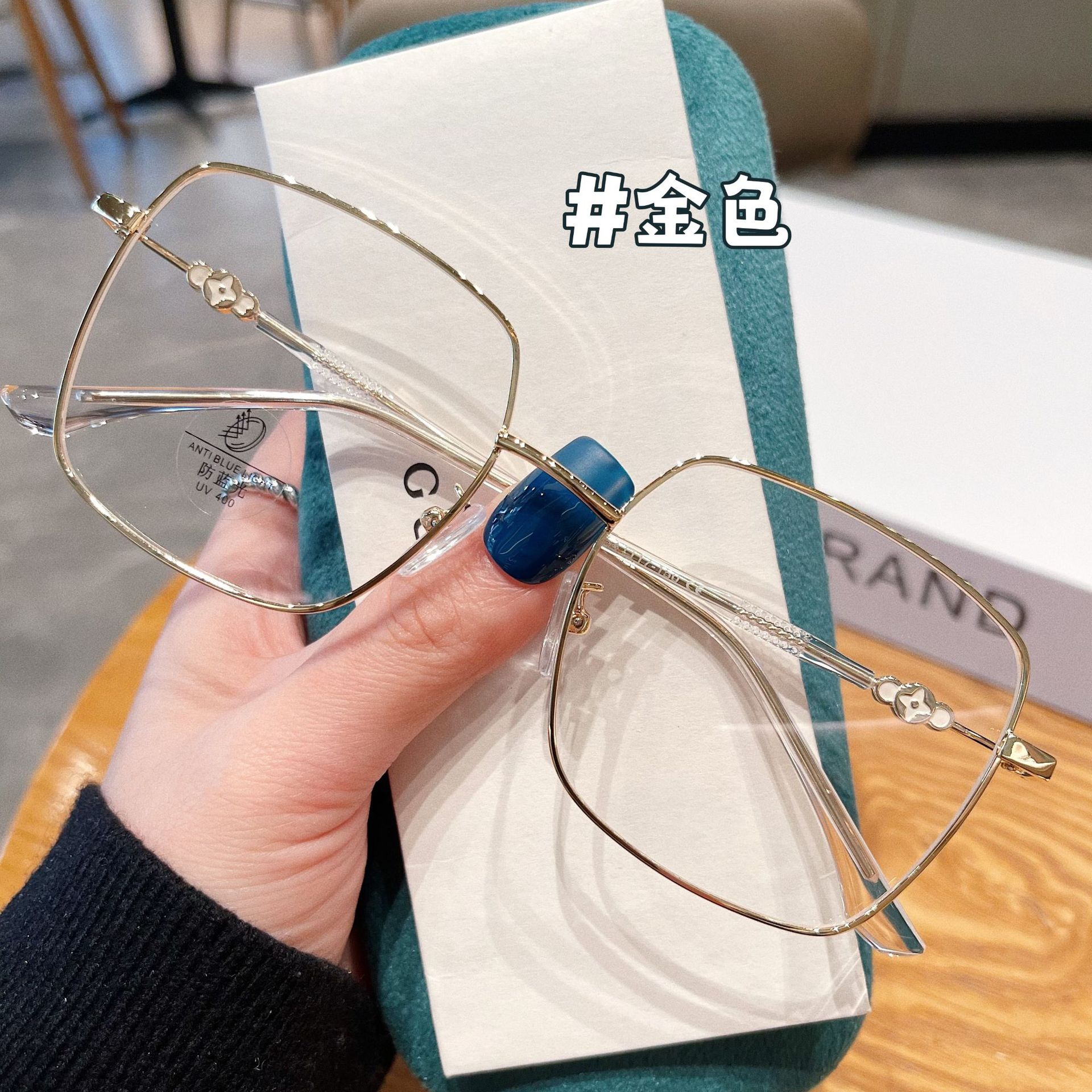 Las gafas para miopía de mujer se pueden equipar con lentes de protección para los ojos con grado anti-luz azul y anti-radiación, montura de seda dorada para mostrar rostros pequeños.